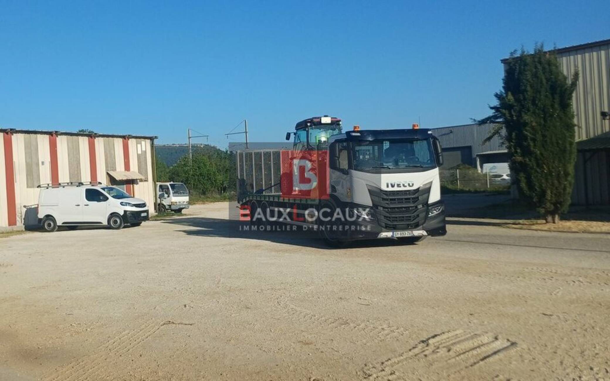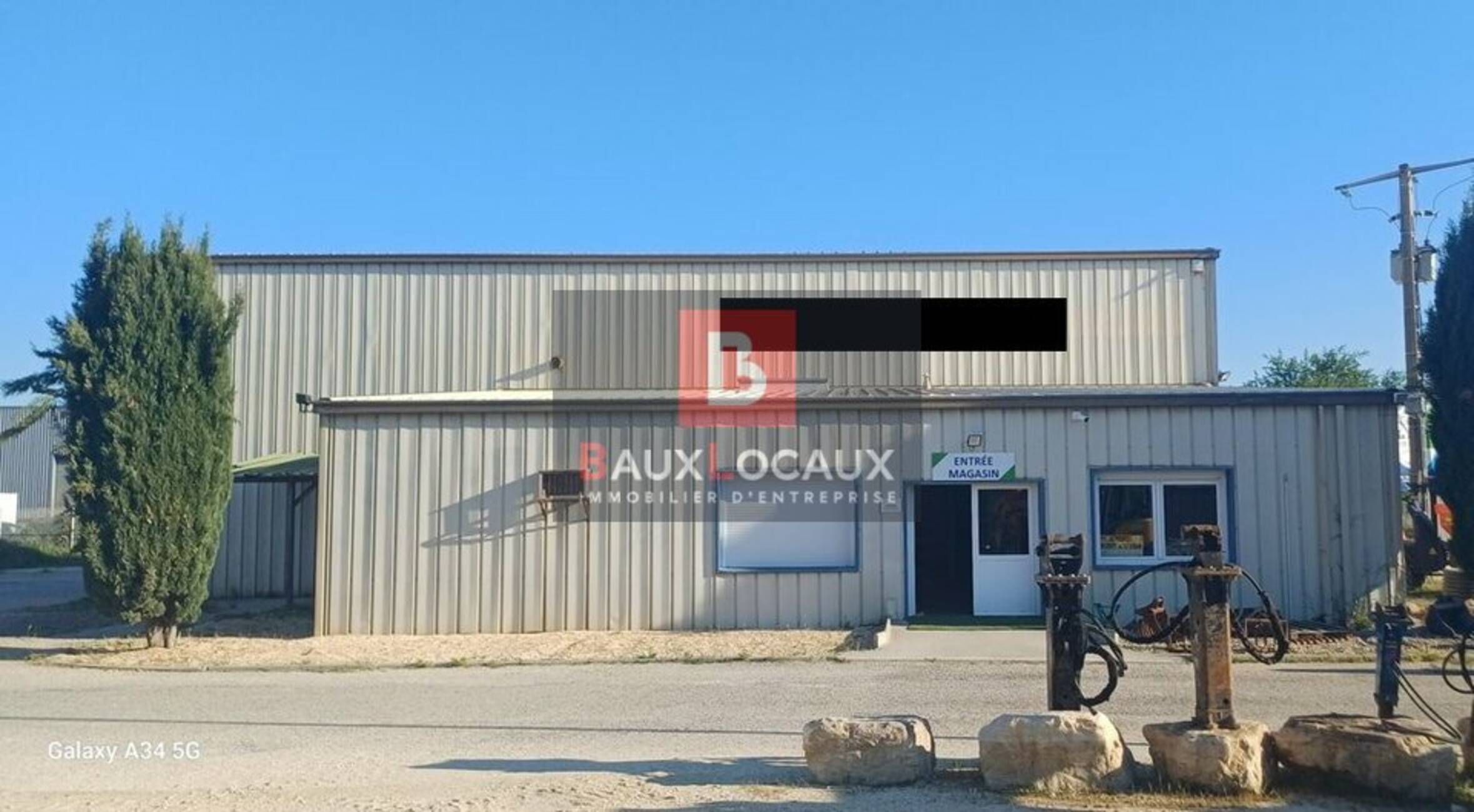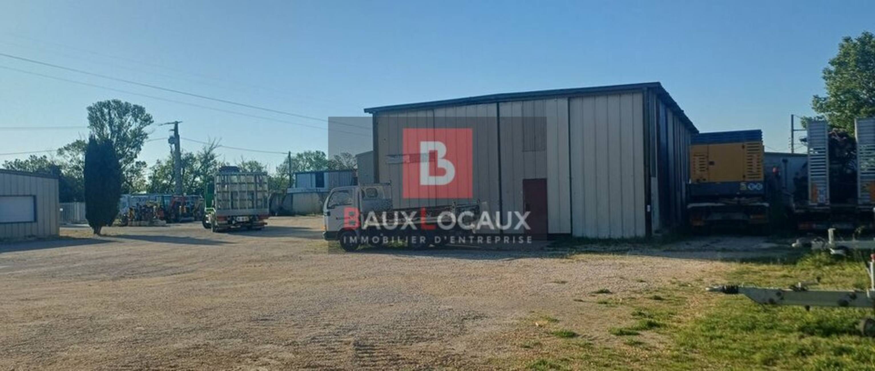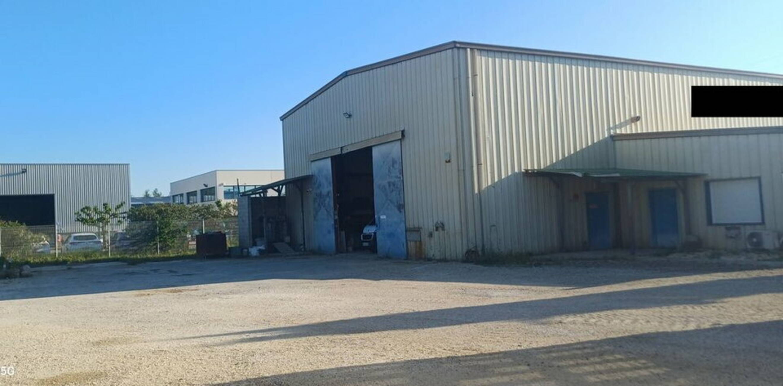 - Second bâtiment (tôle) : 200 m² avec portail coulissant.