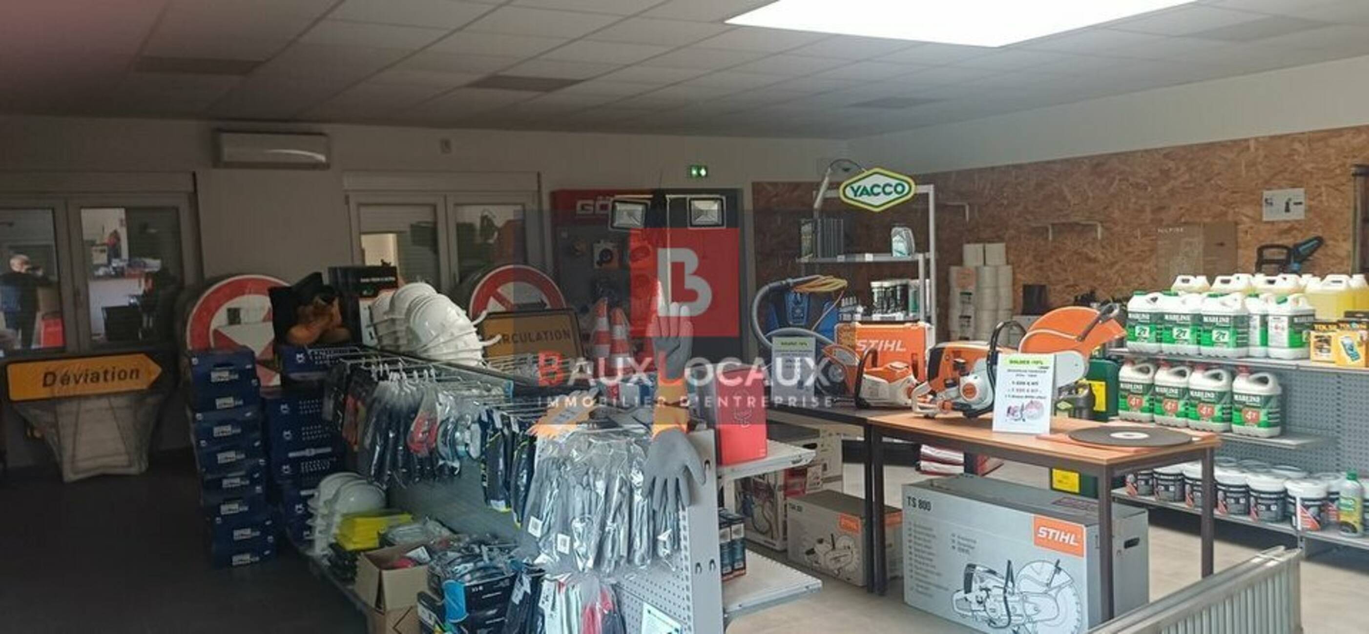 - Surface magasin / bureaux / sanitaires : 120 m² -- neuf (menuiserie aluminium, carrelage, climatisation, alarme, baie de brassage).