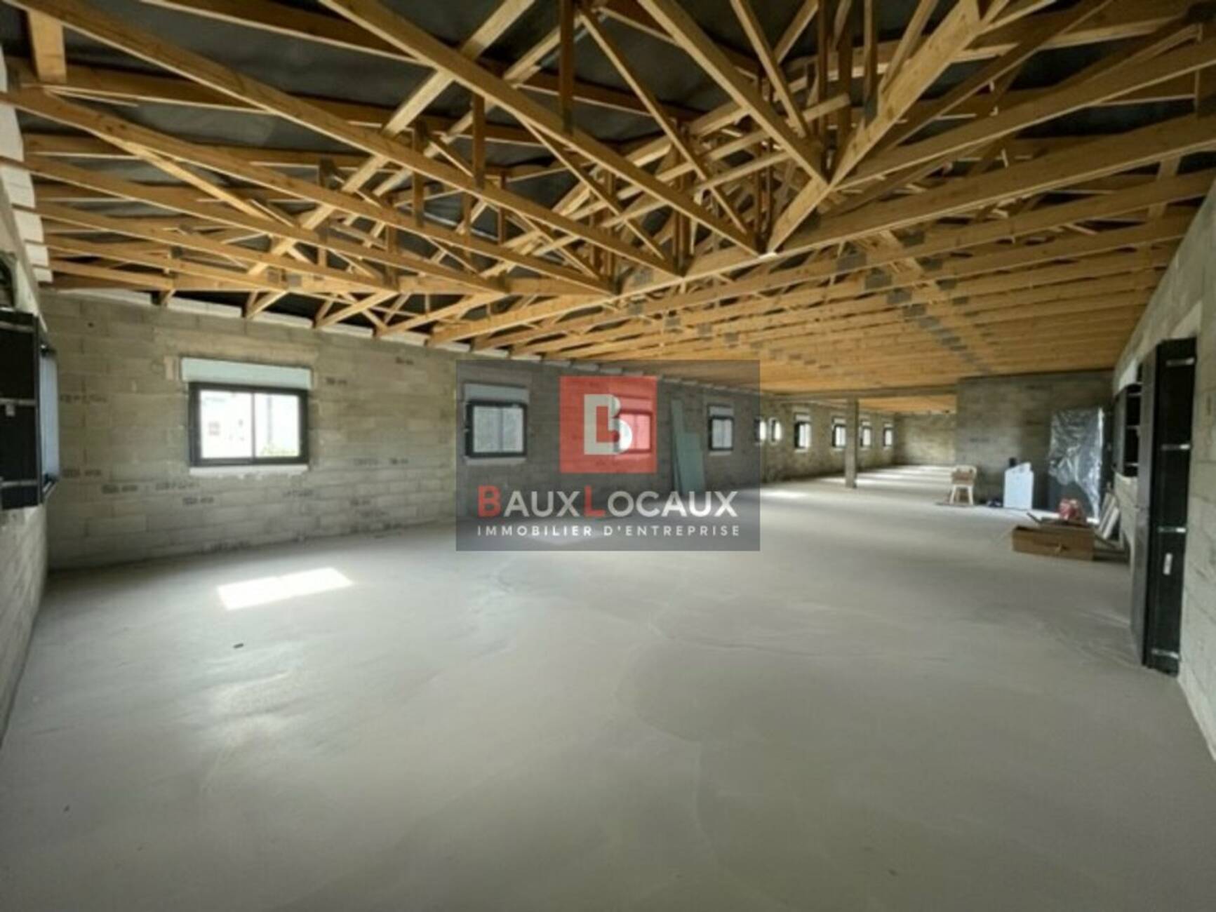 Bâtiment d'environ 600m² livré brut hors d'eau hors d'air composé d'une surface d'environ 321m² en rez de chaussée divisé en 3 cellules et un plateau de bureau à l'étage d'environ 280m²