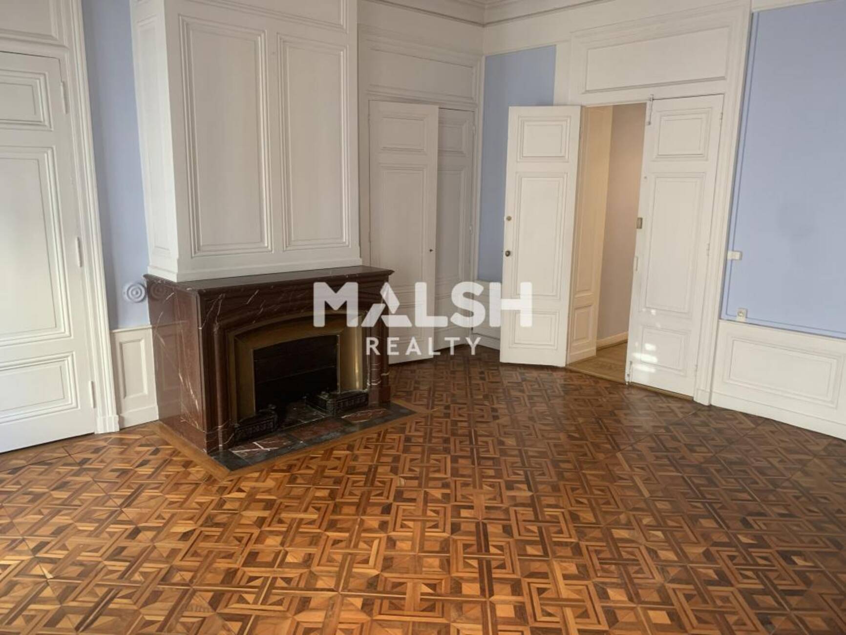 - Plateau avec du cachet (moulures, cheminées, parquet)