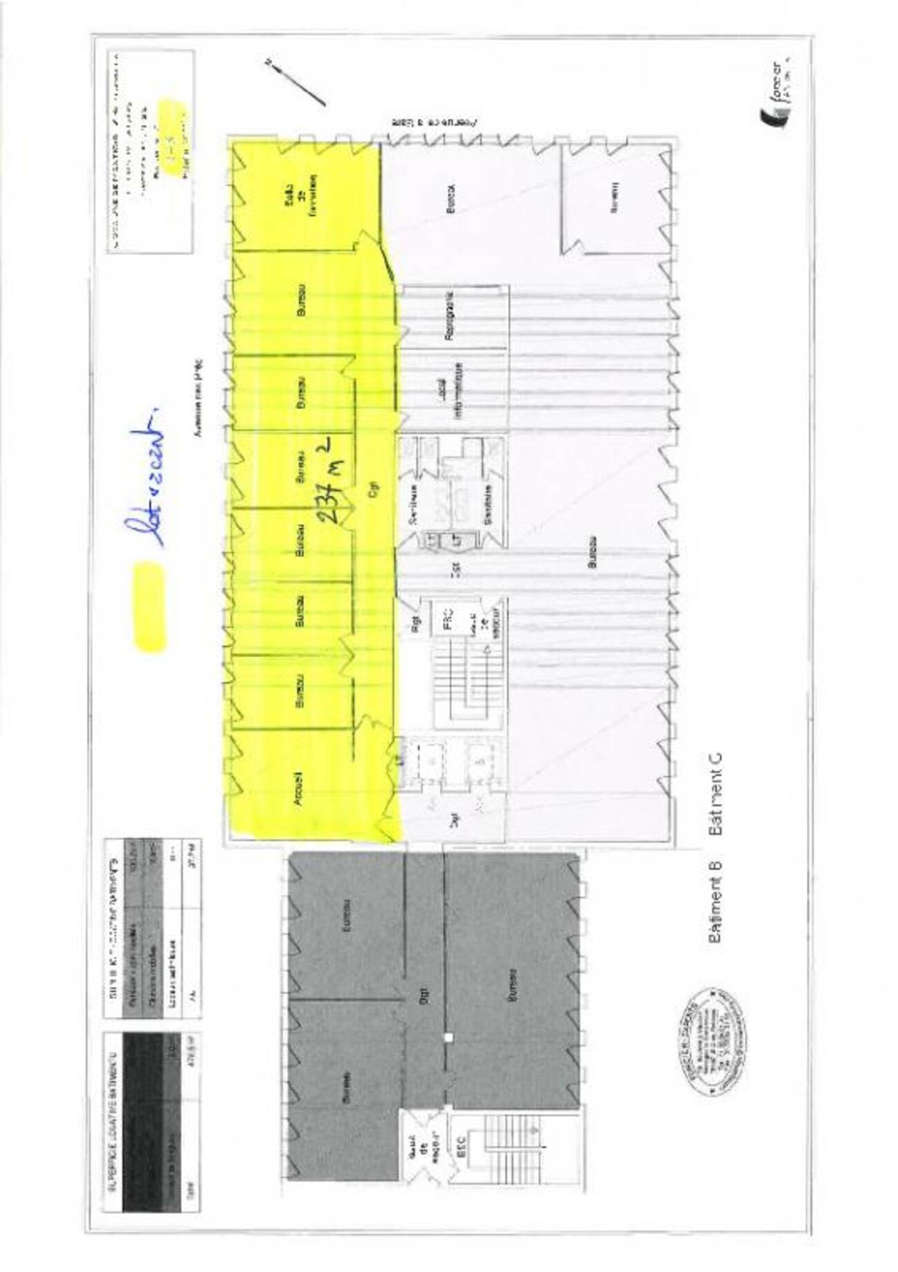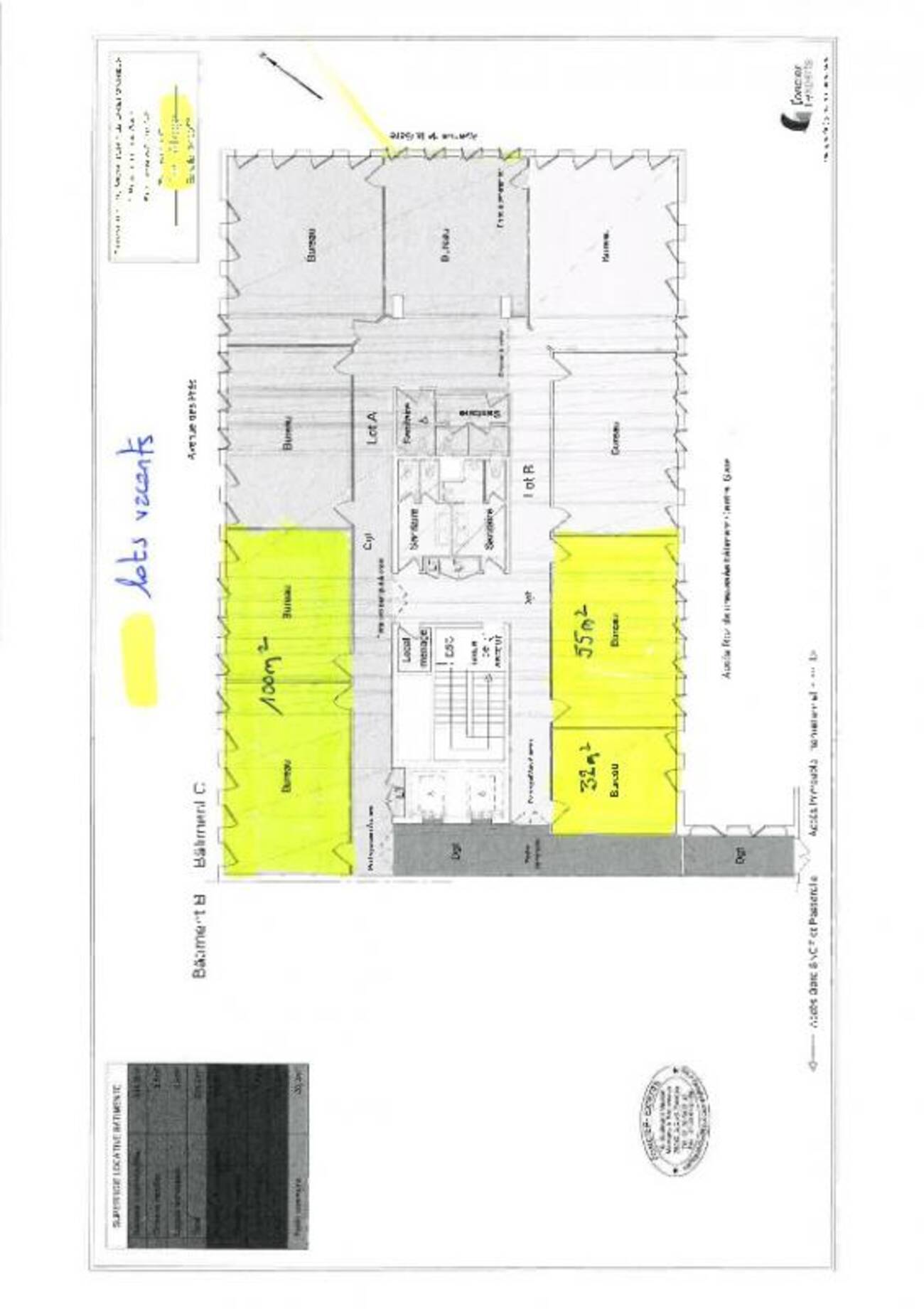 | 3 (lot 204) | Bureaux | 470 | 1400 | Immédiate |