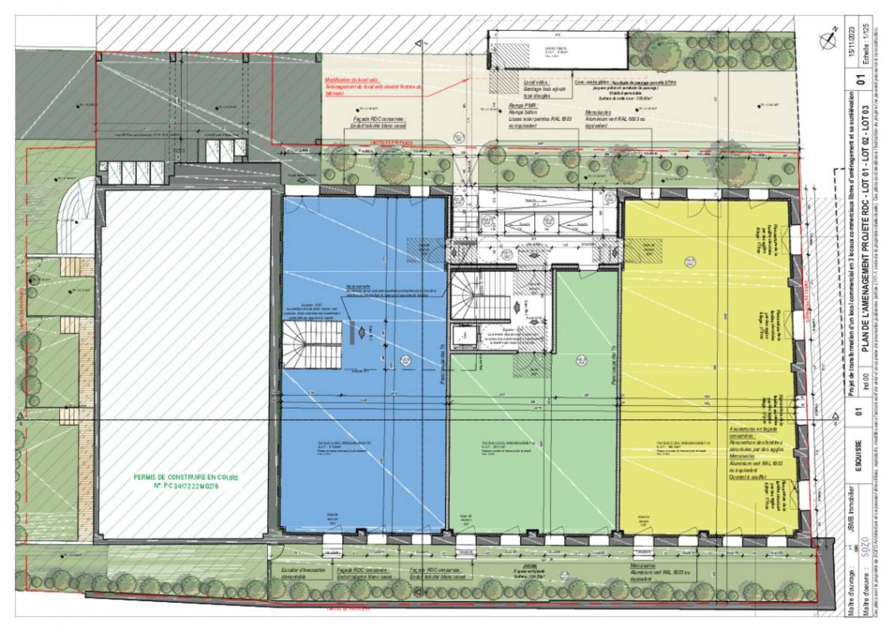 - Rez-de-chaussée : 500 m², divisibles en 3 lots à partir de 121 m²