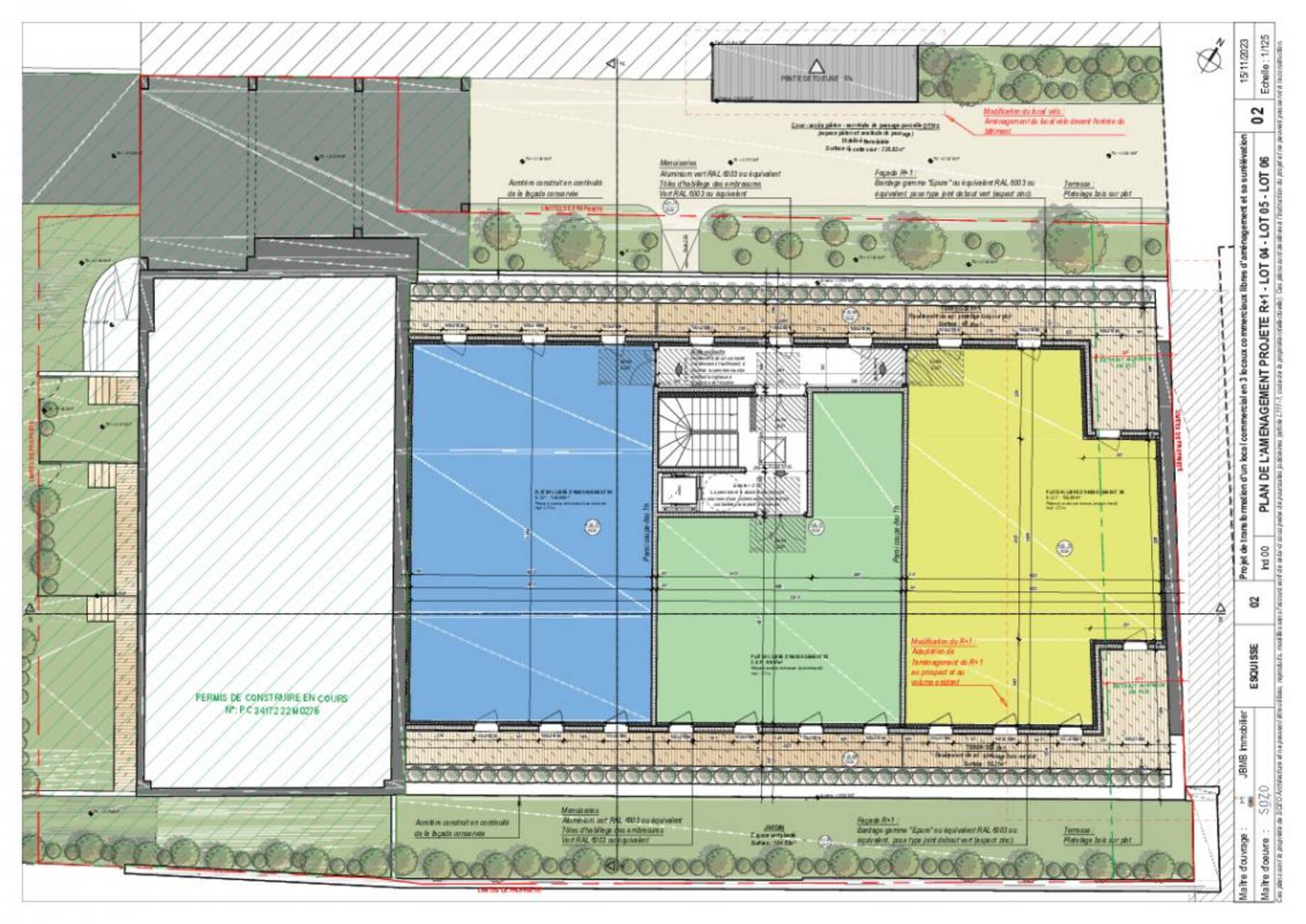 | 03 | RDC | BUREAUX | 198.03 m² | 2 450 €/m² HT | T1 2026 |