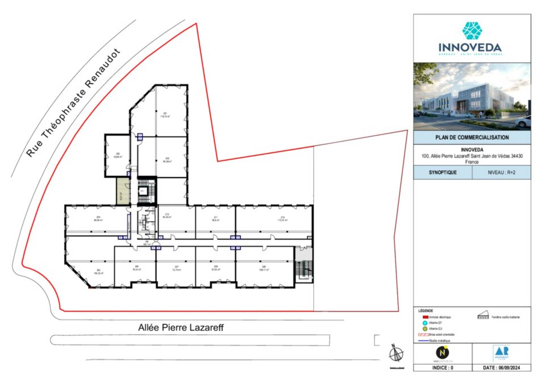 Parmi les lots proposés, le lot 212, situé au 2ᵉ étage (R+2), développe une surface d'environ 110 m².