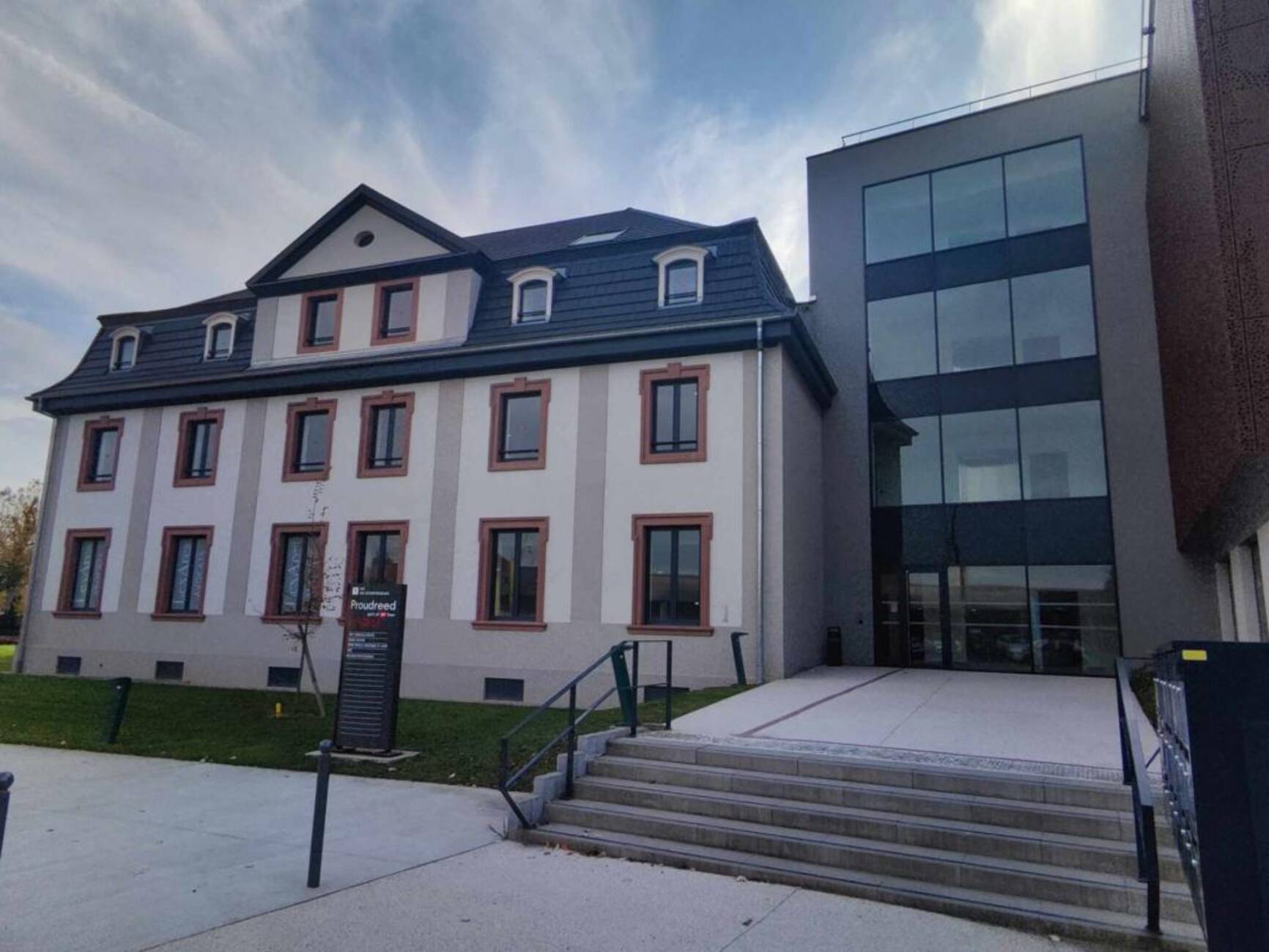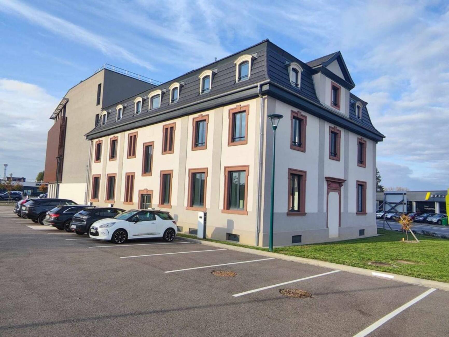 L'alliance d'un bâtiment d'architecture alsacienne traditionnelle allié à une extension ultra moderne font de cet immeuble de bureaux un édifice incontournable de la ville de Saint-Louis.