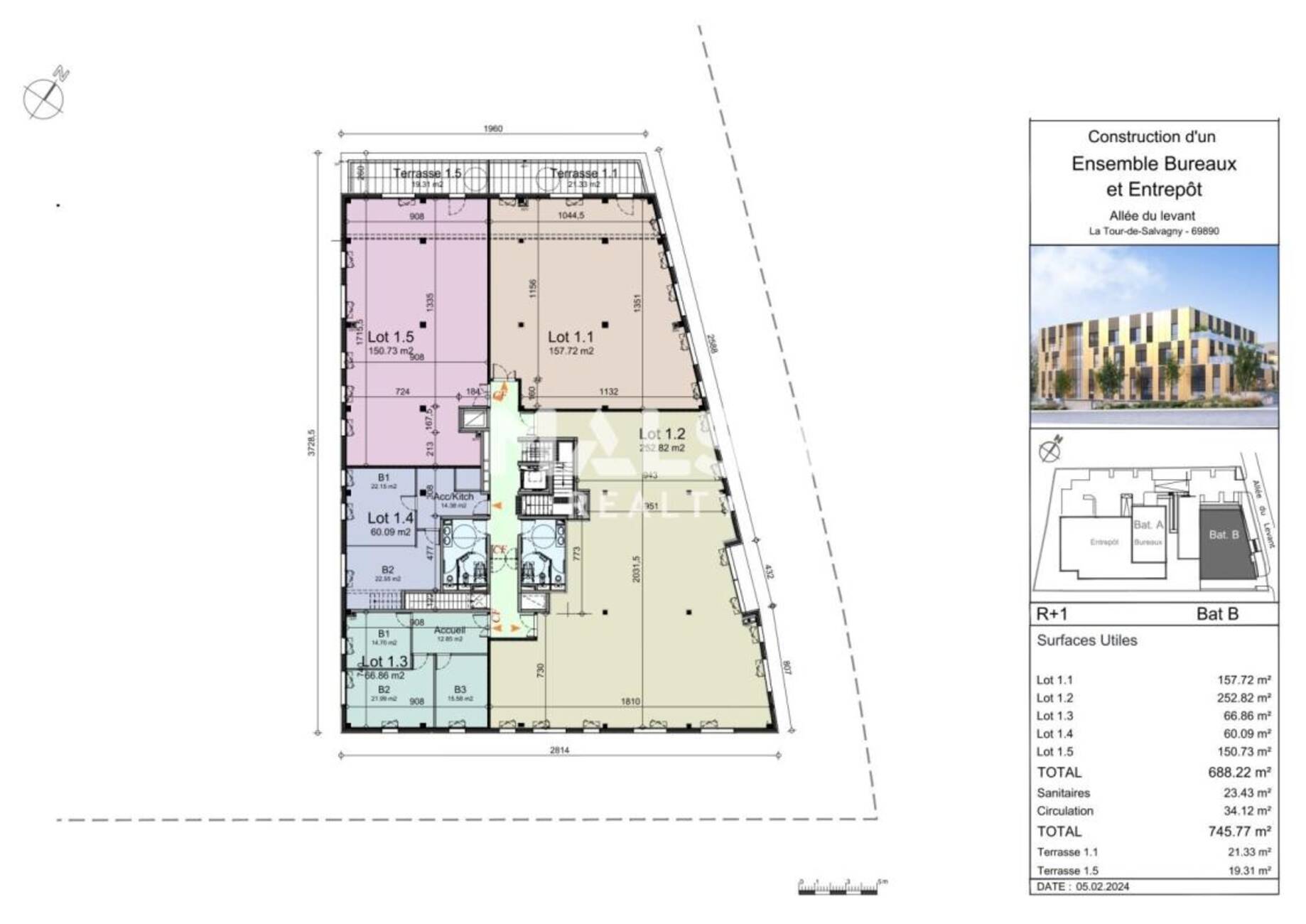 MALSH Realty & Property vous propose plusieurs surfaces de bureaux dans un programme neuf situé au coeur du pôle économique de TECHLID, sur la commune de LA TOUR DE SALVAGNY.