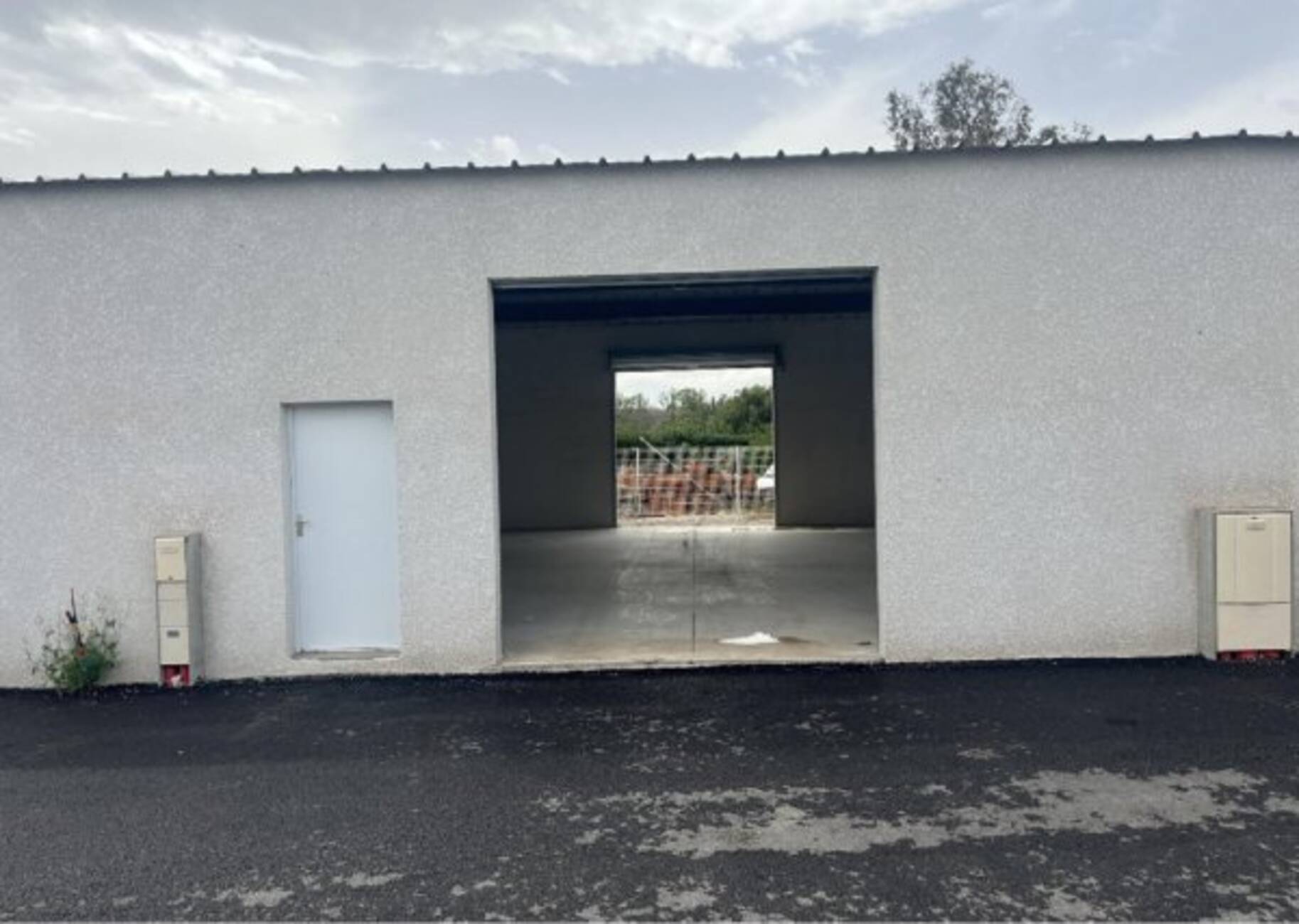 Entrepôt neuf sur la commune de Pollestres, deux grands rideaux métalliques, une cour extérieure d'environ 51m².