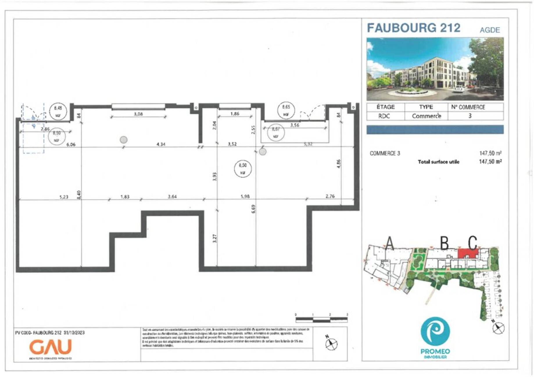 Prix de vente net vendeur : 2 000 Euros HT/m² Honoraires de commercialisation : 2,5 % HT du prix de vente