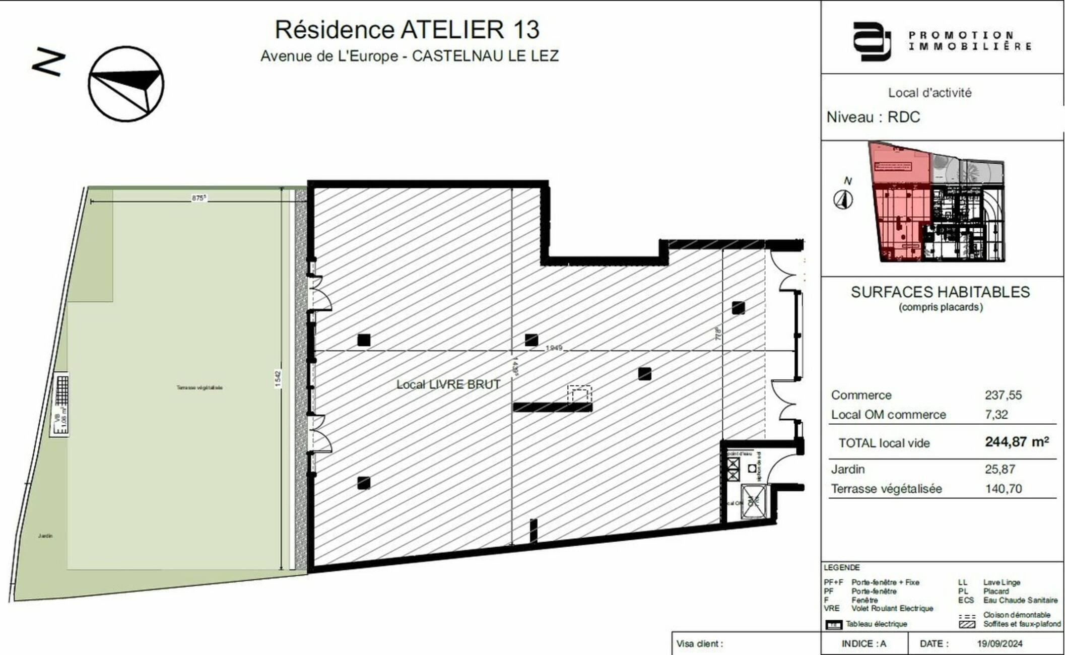 Prix net vendeur : 753 333 Euros HT HD (+ honoraires de commercialisation en sus 3 % HT)