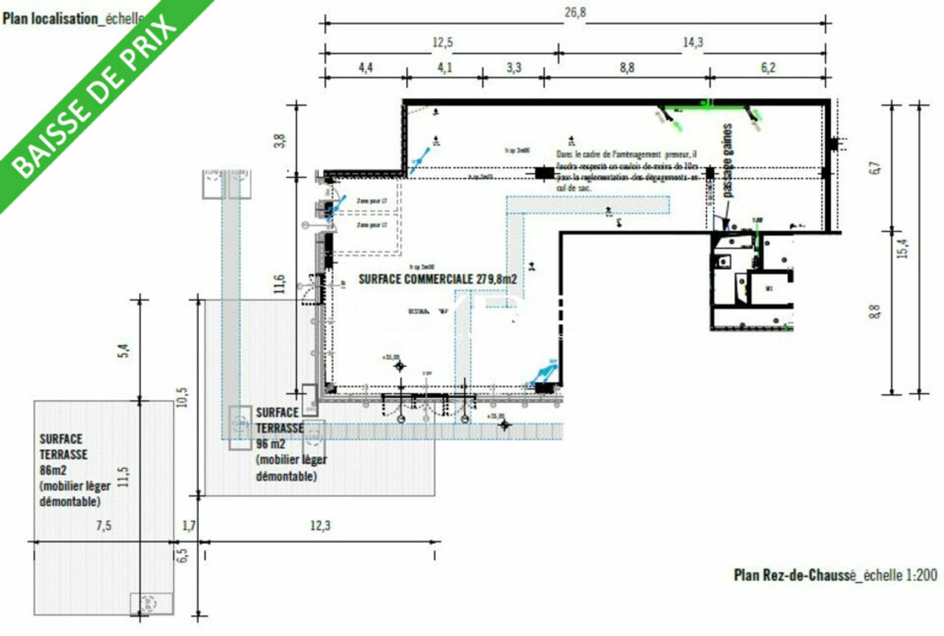 - Surface commerciale : 256.30 m²