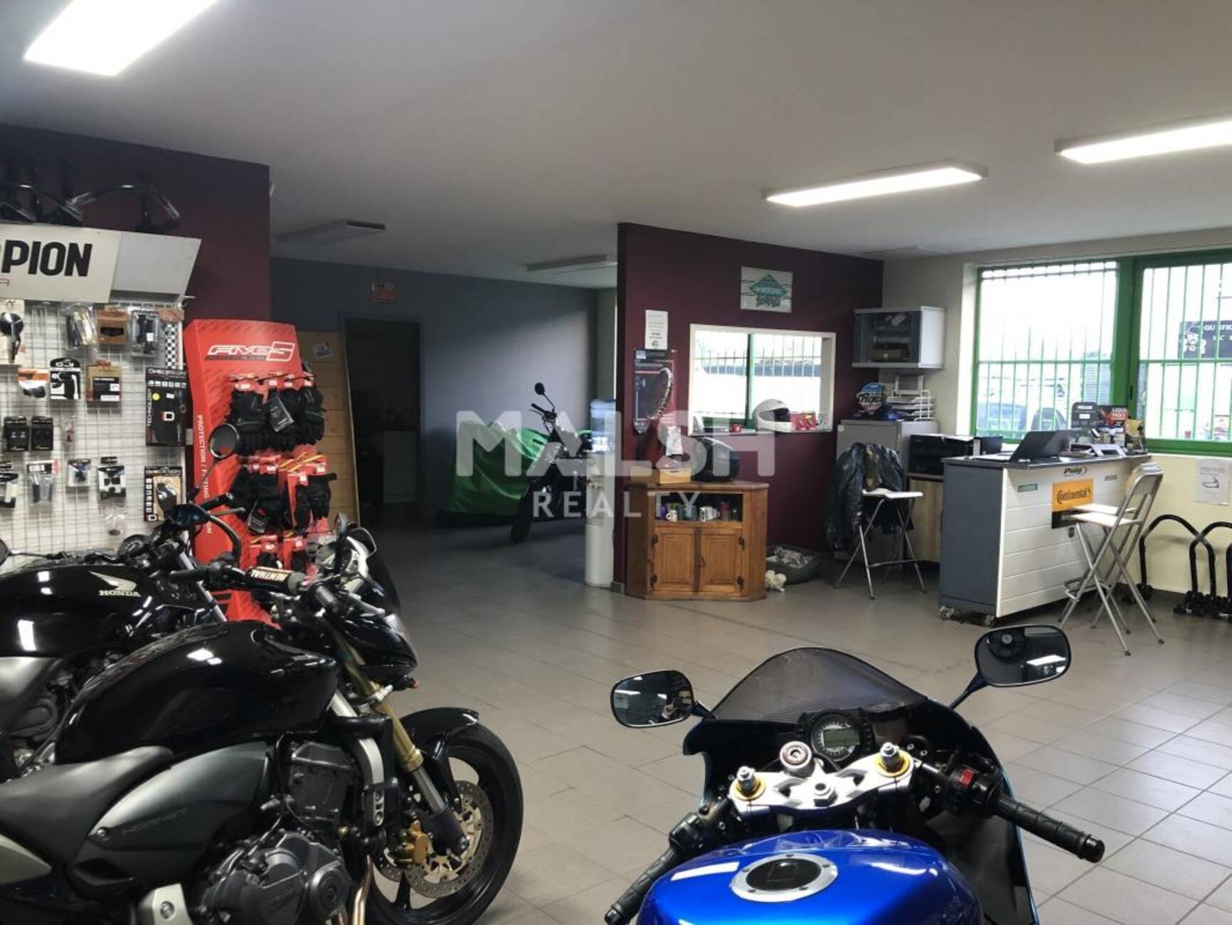 MALSH Realty & Property vous propose dans le sud de Lyon un garage à vendre. Le coeur des services du garage s'oriente vers la vente de pièces détachées, l'entretien et la réparation de motos aussi bien pour le compte de professionnels que de particuliers. D'autres part le garage accueille un dépôt vente de moto, ainsi que de la préparation, toutefois ces activités peuvent encore être largement développées. Affaire saine, sans crédit ou contrat en cours. Local séparé en trois parties, un atelier de 140m², une espace de stockage de 128m² qui pourrait être transformé en atelier, avec un espace de vente & de bureaux sur 82m². 300m² d'emplacement de parking disponible devant le local.