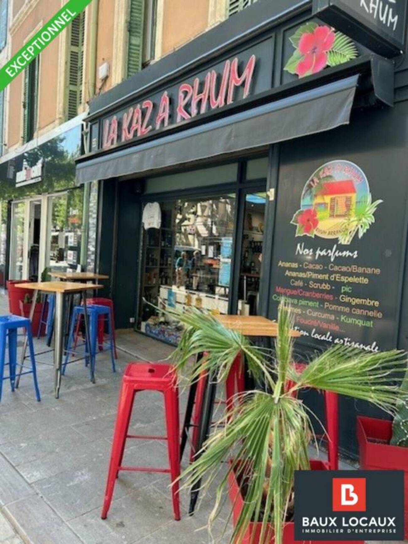 - D'une belle Terrasse de 20 m² avec mobilier extérieur.Ce bel établissement est entièrement climatisé et équipé d'une alarme. Enfin une sono intérieur et extérieur est disponible pour animer vos soirée car en effet une majorité des festivités Martégale se passent dans la rue de la KAZ A RHUM Le plus UNE LICENCE IV ( vente en emporter et sur place).