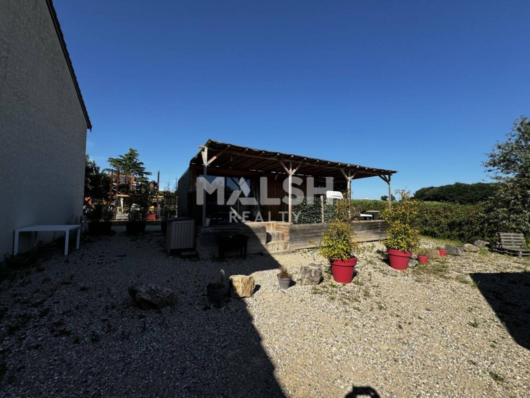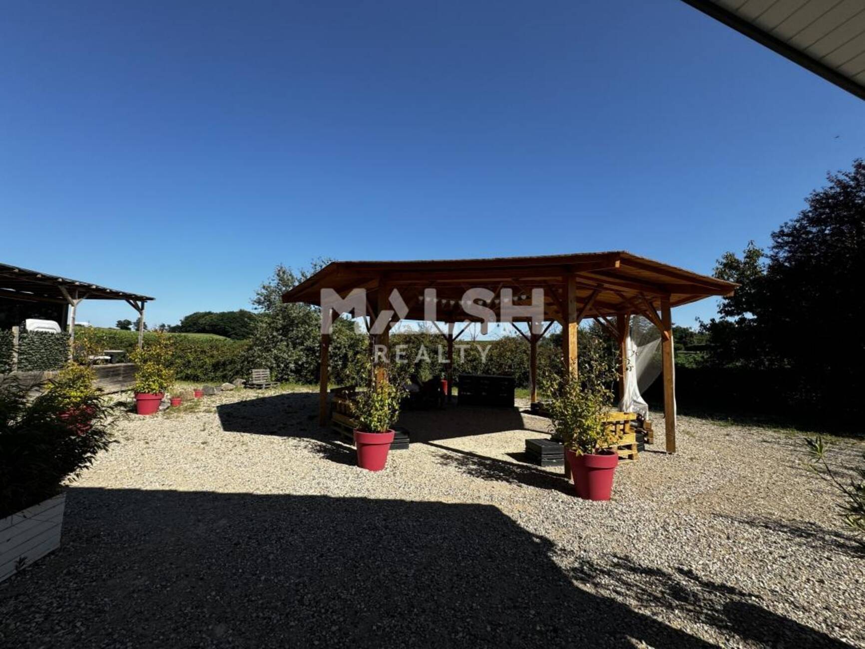 - Une terrasse couverte de 20 m² attenante au bâtiment, ainsi qu'une belle tonnelle en bois et d'un 'cottage' de type 2 avec extérieur privé composé d'une terrasse couverte et d'un jacuzzi