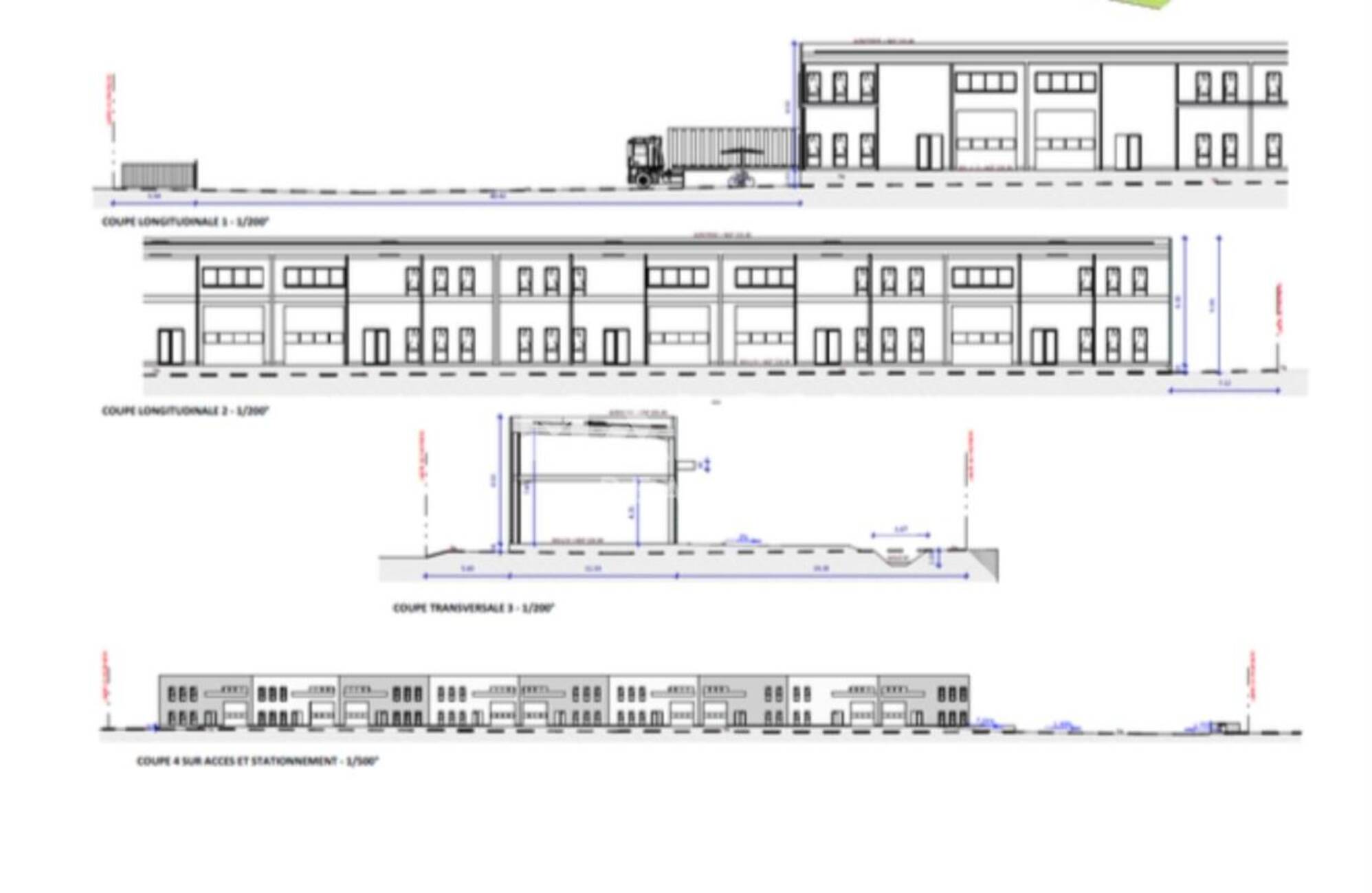 - Auvent bardage type Clin devant les portes piétonnes et portes sectionnelles