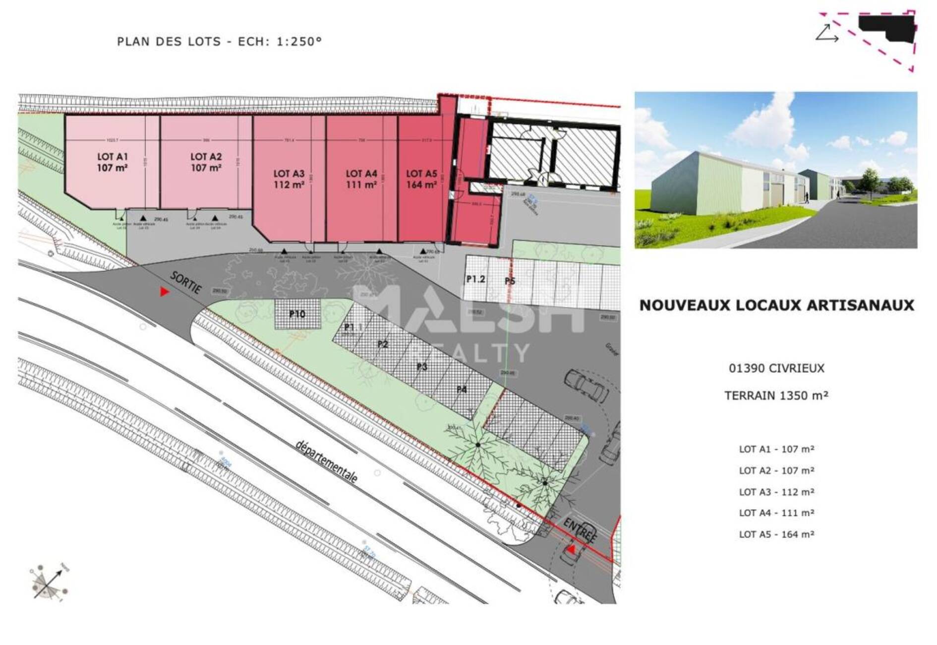 MALSH Realty vous propose à la vente au sein du Technoparc Saône Vallée à Civrieux, un local d'activités récent actuellement loué d'une surface totale carrez de 123,75 m² comprenant 85,37 m² d'activités et 38,38 m² de bureaux aménagés, climatisés et cloisonnés répartis sur 2 niveaux. Ce local dispose d'une porte sectionnelle et bénéficie d'une zone parking de 48 m² aménagé (enrobé).