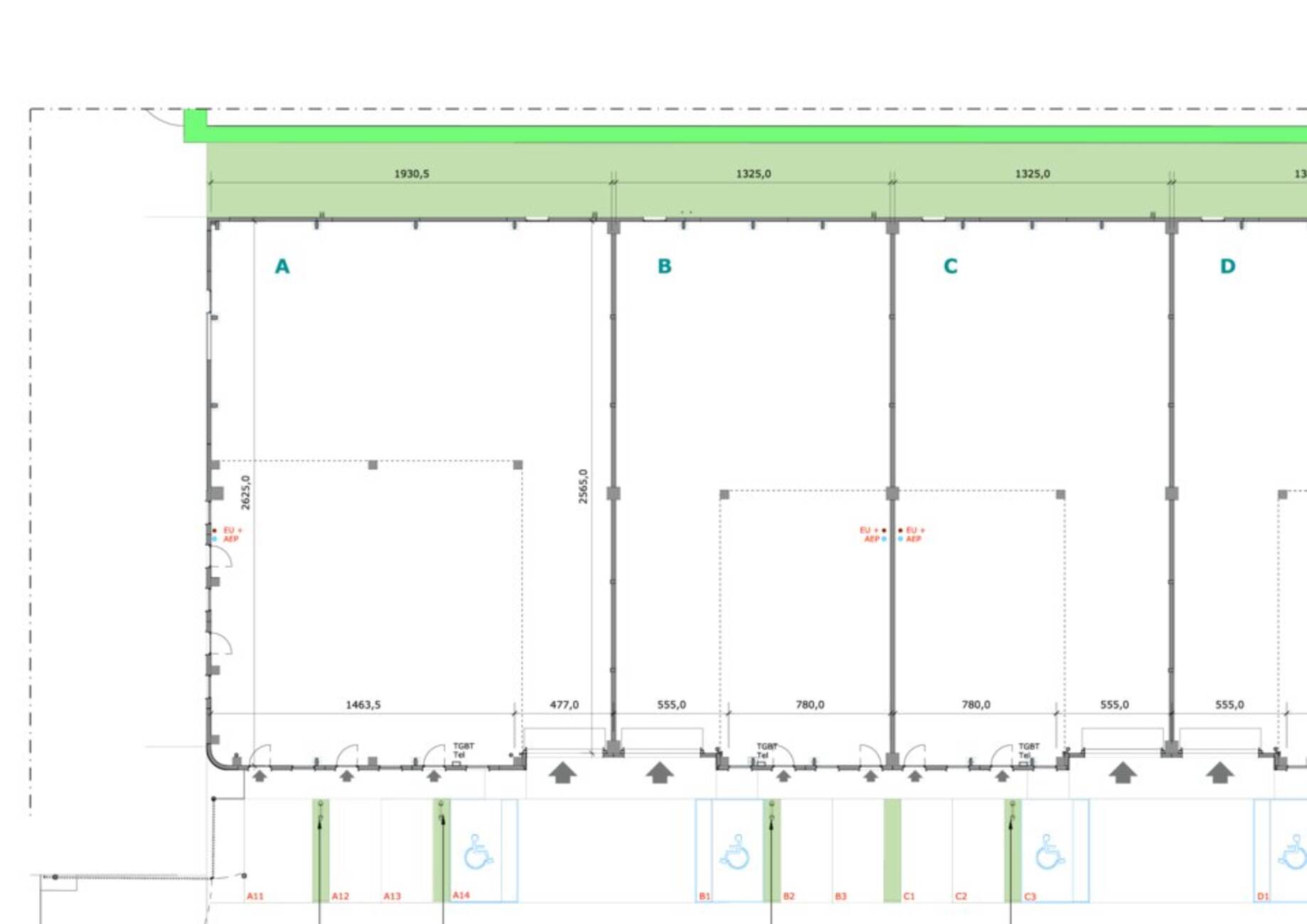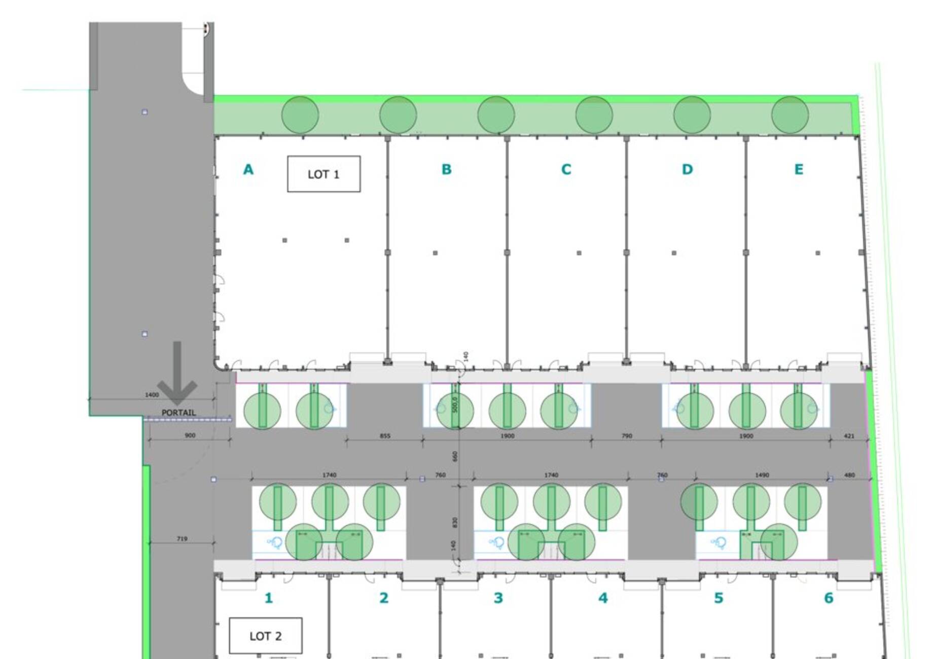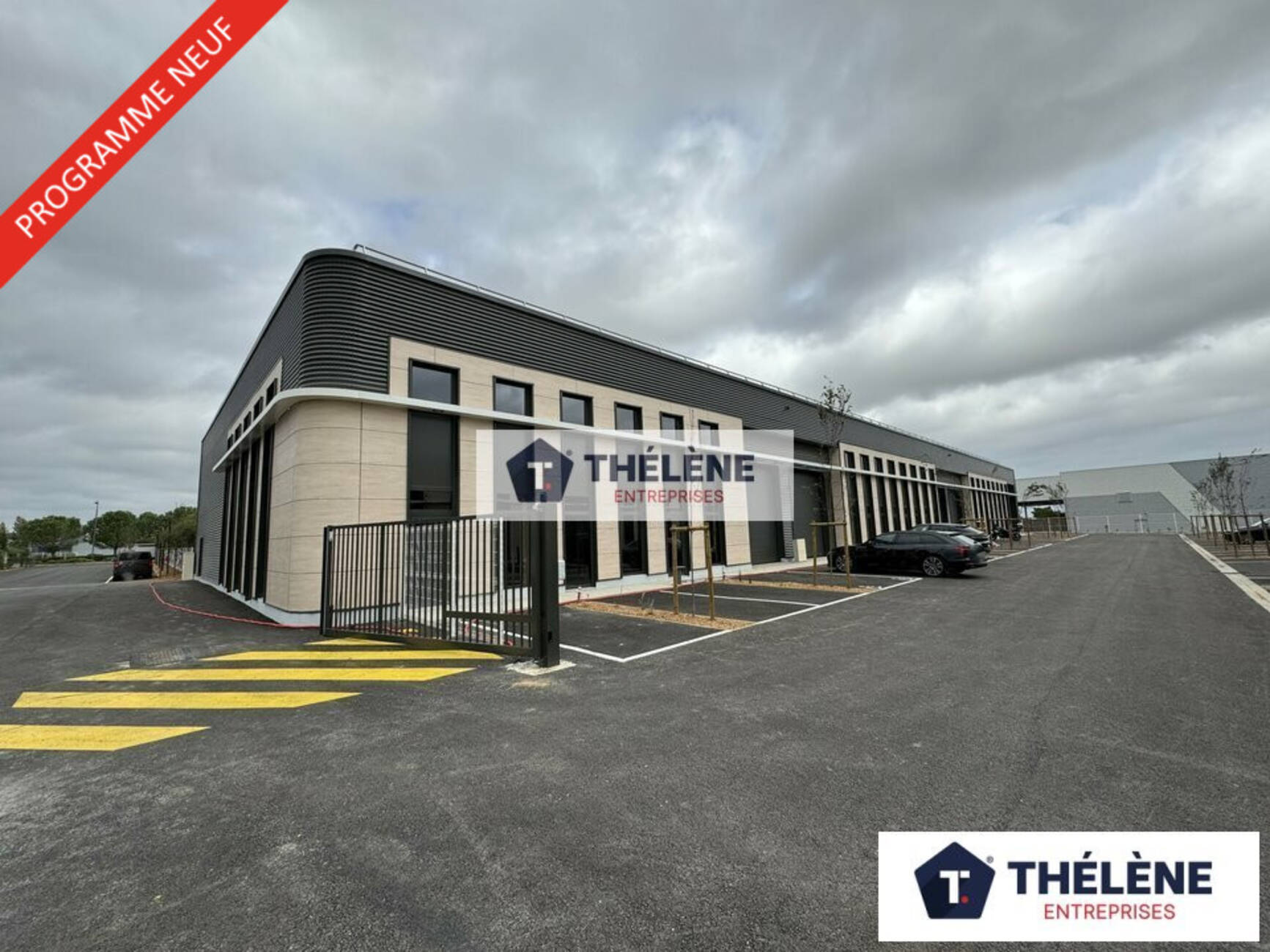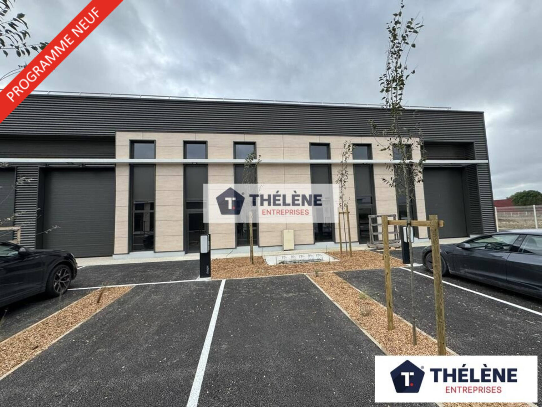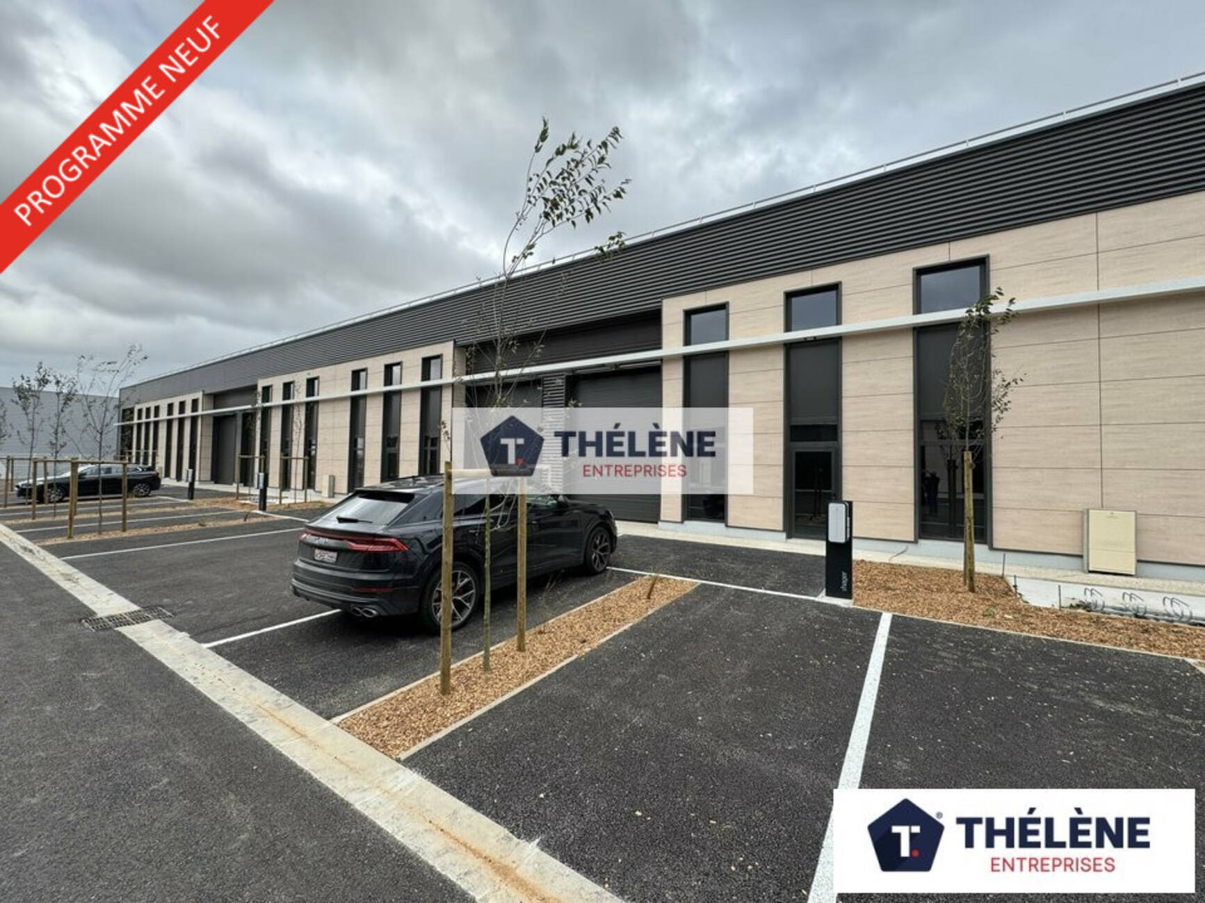 Construction en bardage double peau, réseaux en attente, dalle béton industrielle (2,5 t / m²), HSP 7m (3,50 m sous mezzanine), mezzanine à usage de bureaux ou stockage, porte sectionnelle (L) 3,70m x (H) 4,50m, luminaires Led, places de parking privatives (3 dont une avec arrivée de borne de recharge).