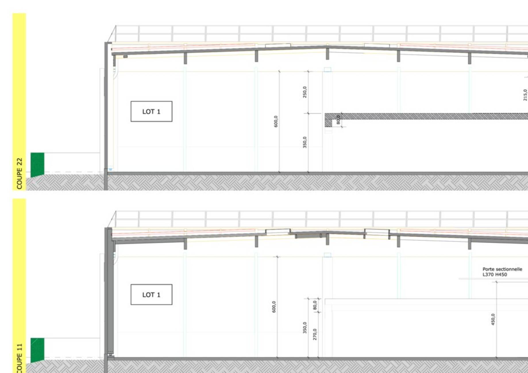 - Porte Sectionelle : (L) 3,70m x (H) 4,50m