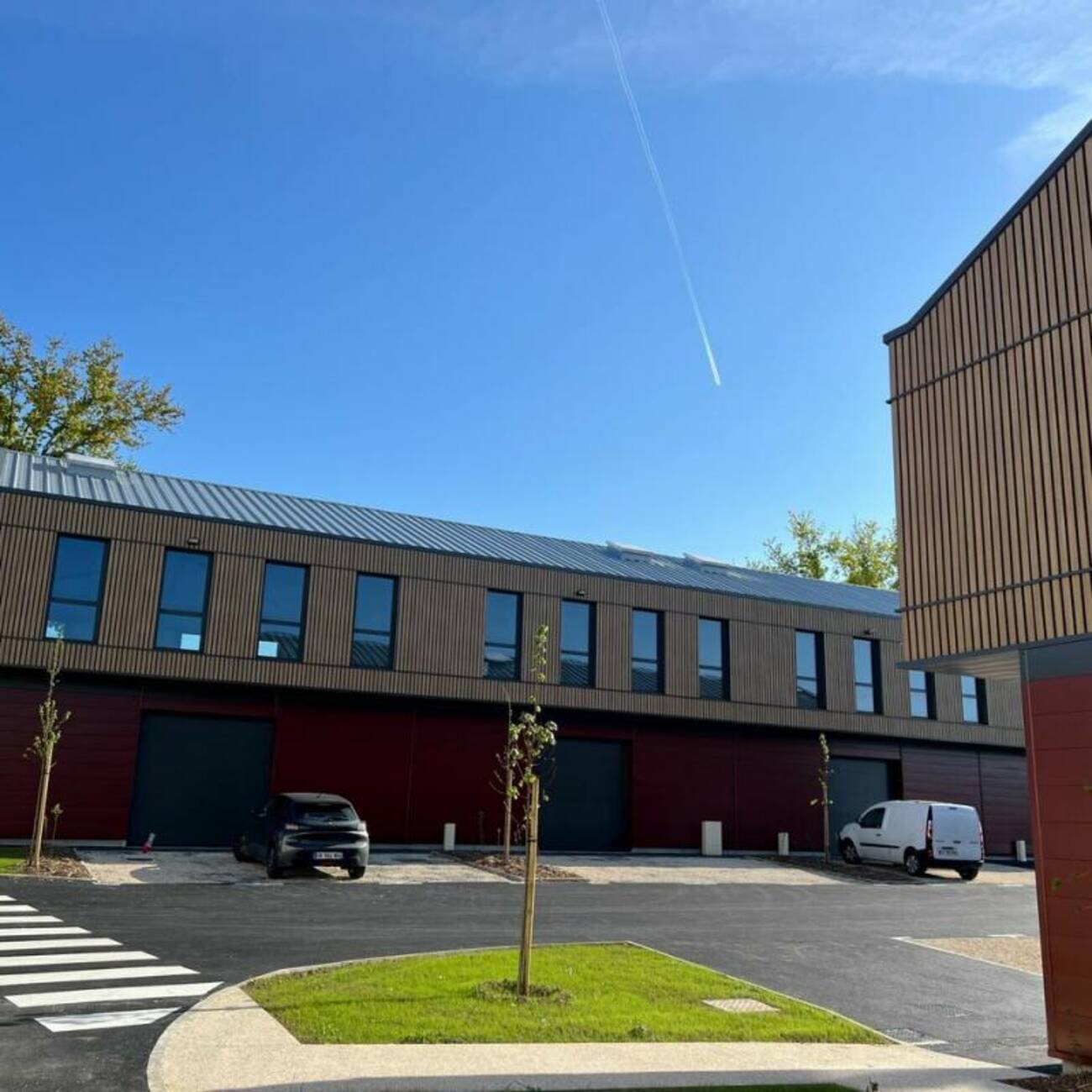 - Architecture soignée, façades contemporaines avec grandes vitrines