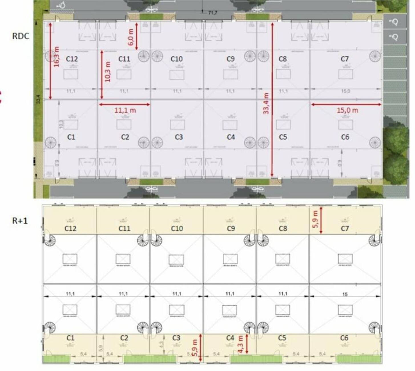 - 5 bâtiments en vefa divisibles jusqu'à 12 cellules