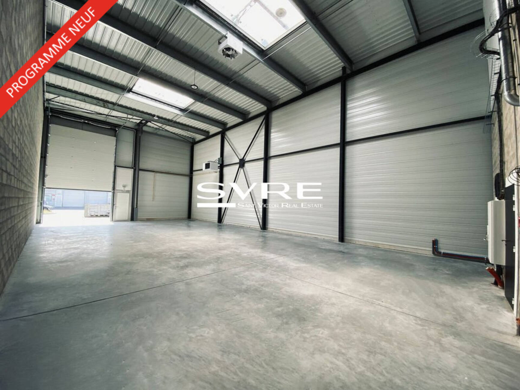 - Toiture bac acier, isolation conforme à la réglementation RE 2020,étanchéité, sous face prélaquée intérieure blanche, skydome/éclairage zénithal