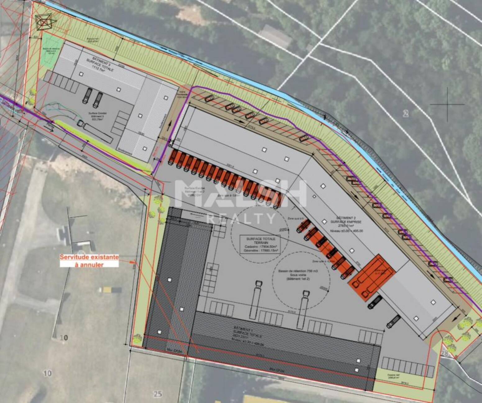 - L'ensemble est livré brut béton, fluides en attente en partie, TGBT, éclairage leds, portail et éclairage extérieur, installés.
