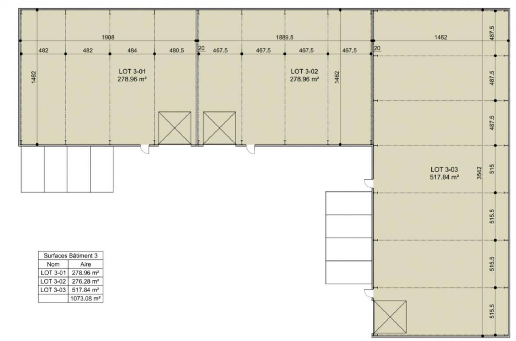 | RDC | Activités | 517,84 | 2ème Semestre 2026 | 1 450 m² HT/HDE | 2,50 % HT du montant de la vente HDE, à la charge de l'acquéreur | TVA et Droits d'enregistrement | Lot 3-03 | |||||||||||