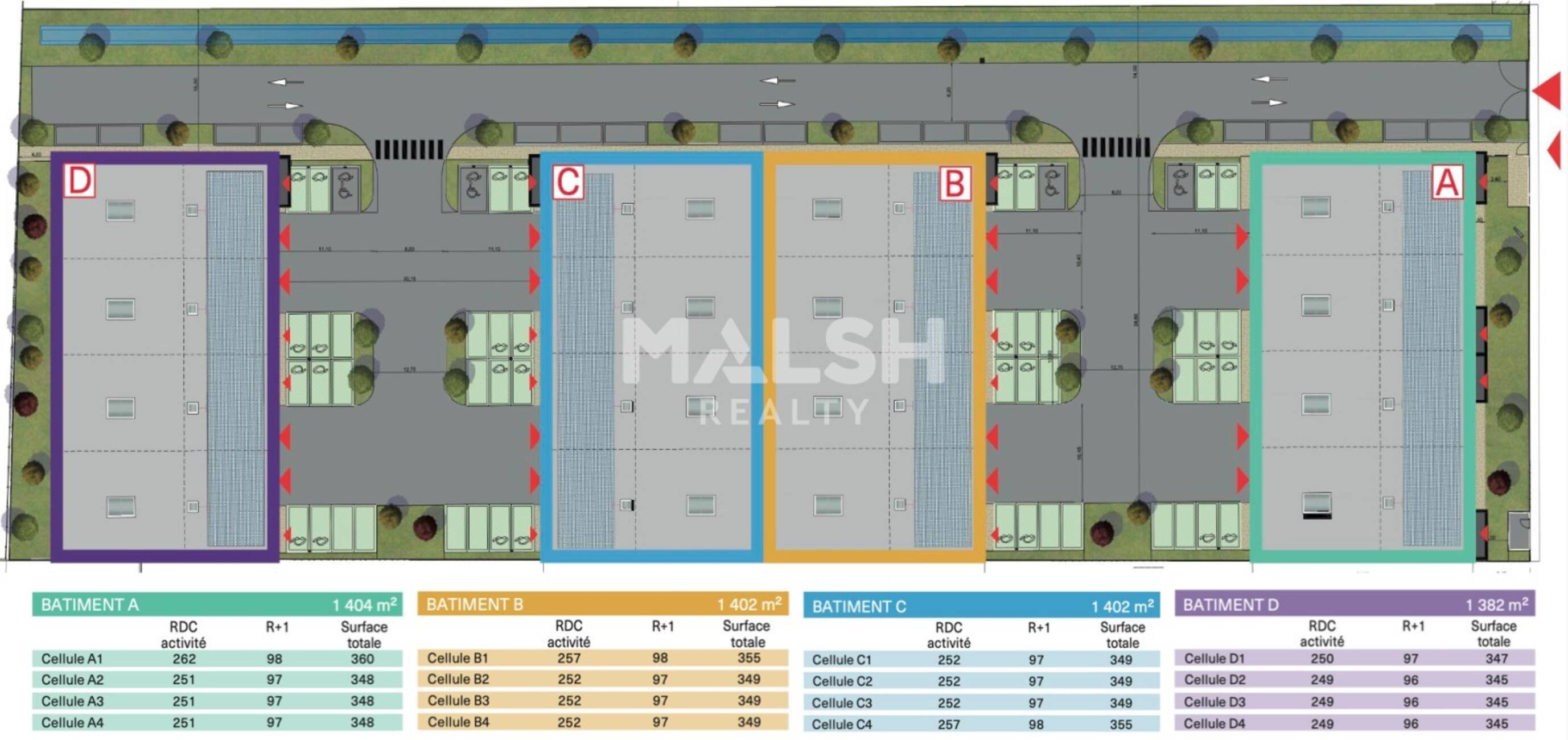 MALSH Realty & Property vous propose à la vente au sein d'un nouveau parc d'activités clos et sécurisé composé de 4 bâtiments, des locaux d'activités neufs d'une surface totale d'environ 5590 m² divisibles en plusieurs lots à partir de 345 m². Vente VEFA en locaux aménagés en open-space + sanitaire RDC et R+1. Le site dispose d'un accès pour les camions de 19 tonnes et de nombreuses places de parking extérieures.