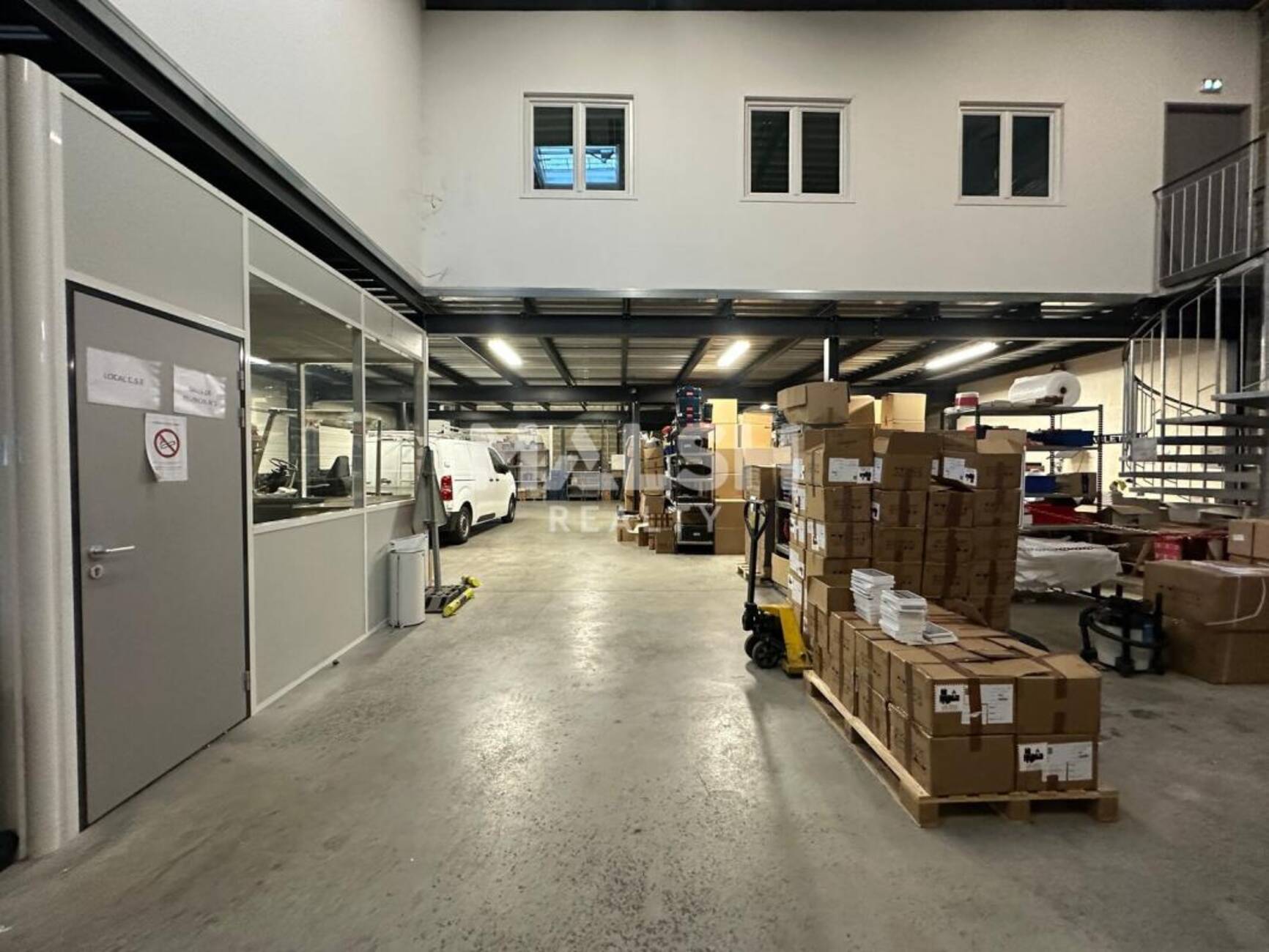 - Hauteur sous mezzanine : 3 m environ