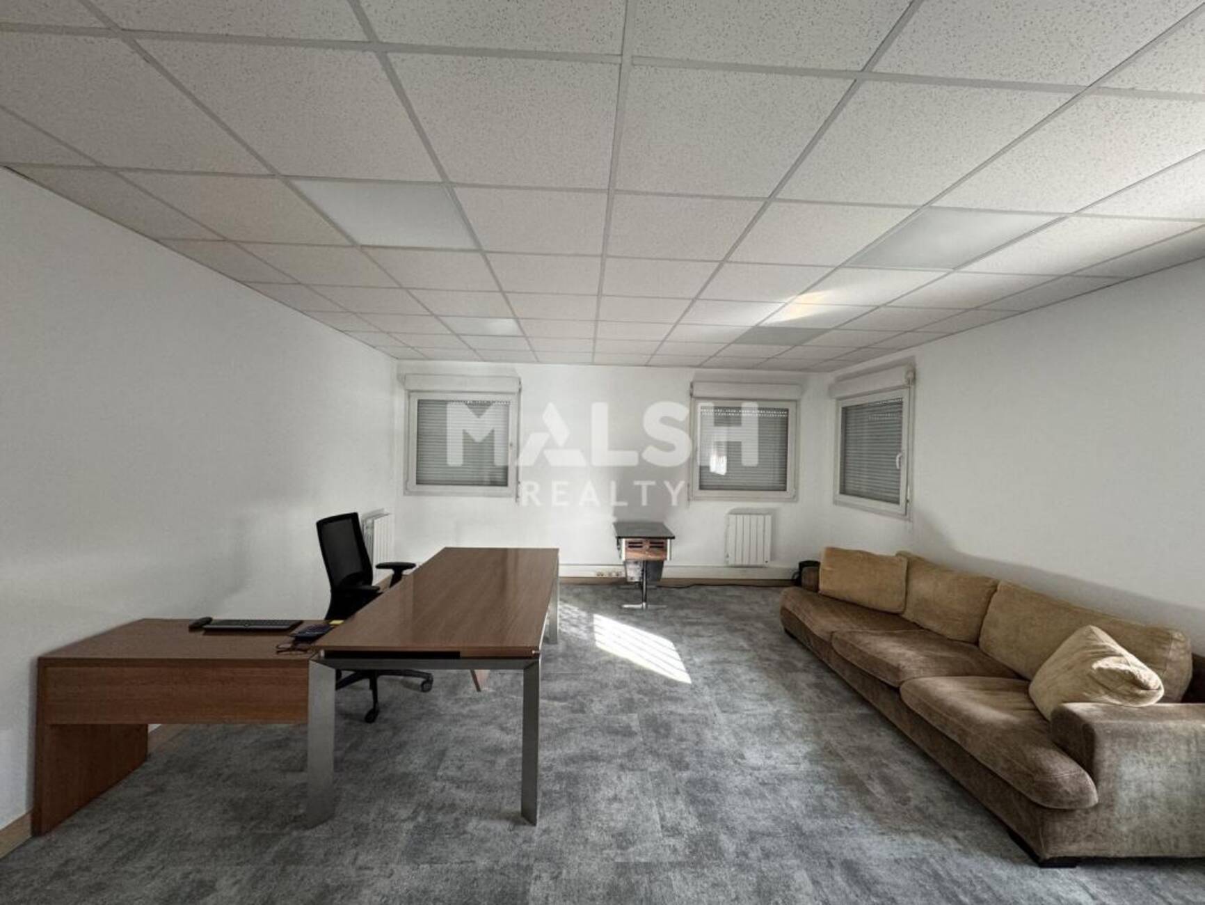 MALSH Realty propose à la location à Andrézieux Bouthéon, une surface de bureaux de 59 m² avec vitrine plain pied PMR, bénéficiant d'un bon visuel et d'un stationnement aisé à deux pas de l'accès RD 498 - Bon état