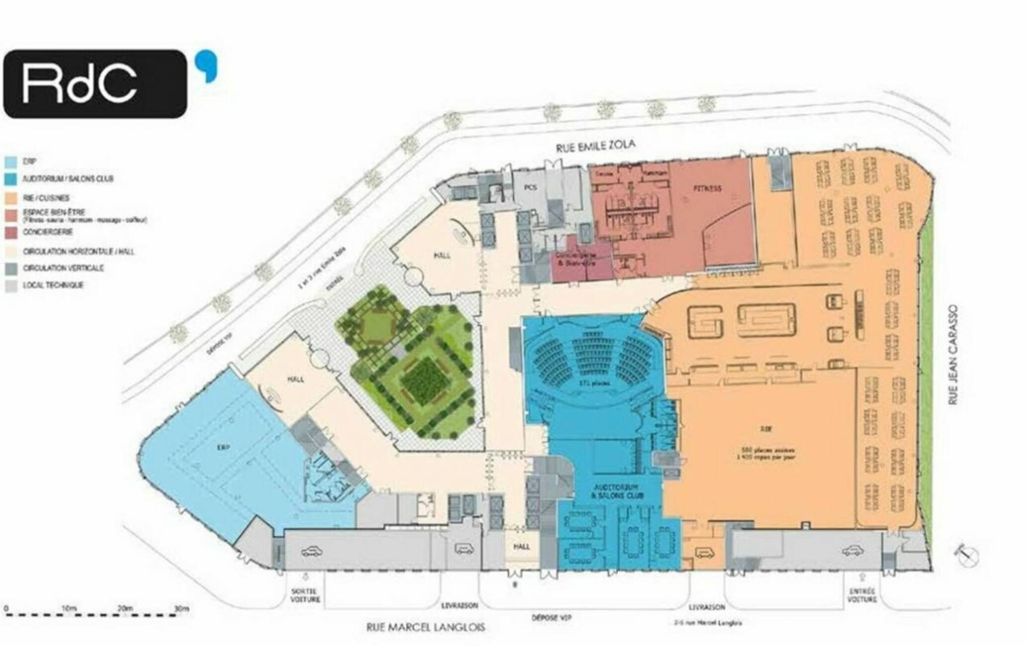 - Parking : 110 places moto en R-1-2 et -3198 pour vélo en R-1