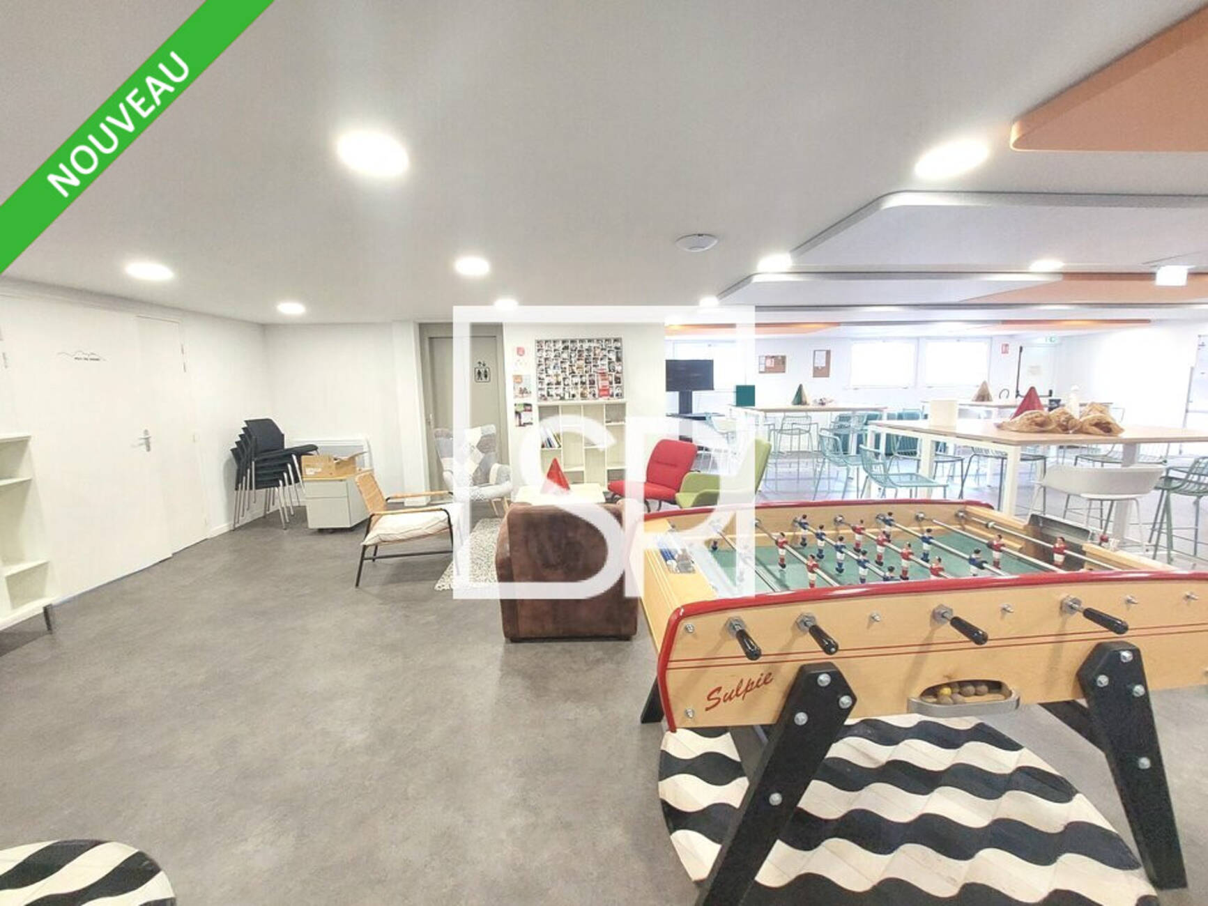 - En rez-de-chaussée : 4 salles de réunion, 1 salle open space, sanitaires PMR.