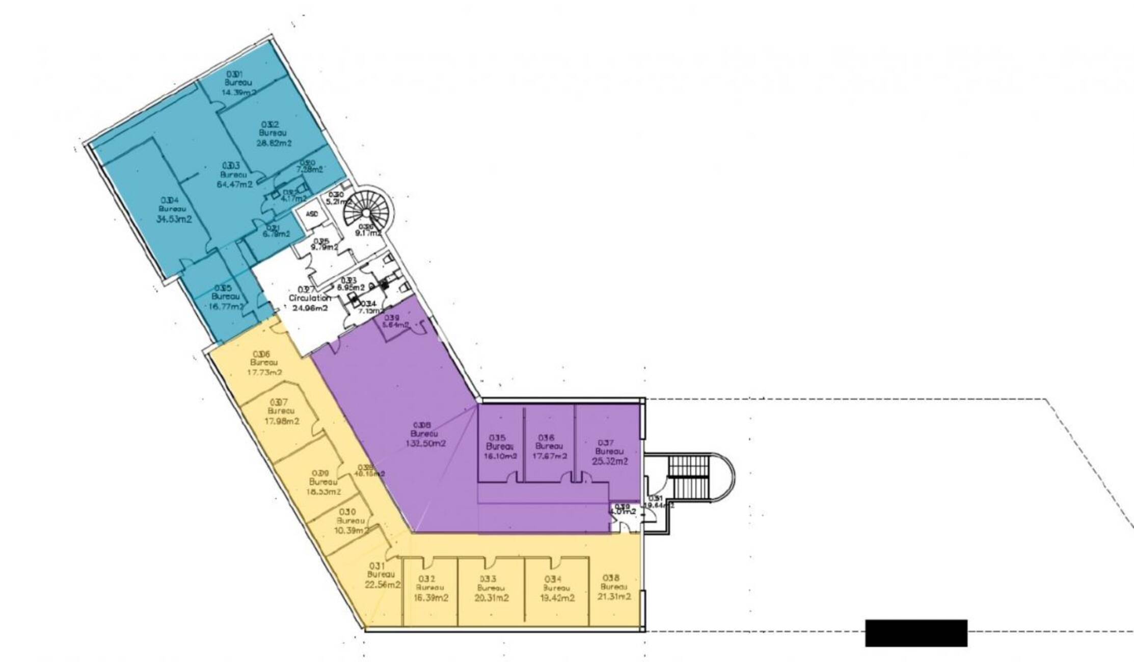 - Lot R+3: Plateau aménagé et cloisonné