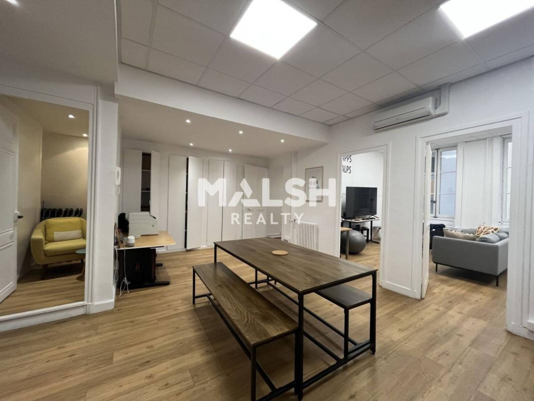MALSH Realty propose à la location des buraux de 116 m² situés rue Édouard Herriot, à deux pas de la place Bellecour. Au 2ème étage d'un immeuble haussmannien, ces bureaux récemment rénovés offrent un cadre de travail prestigieux dans un emplacement premium. Ils se composent de trois grands espaces lumineux, d'un balcon filant, ainsi que de sanitaires privatifs. Le cachet de l'ancien se combine au confort moderne
