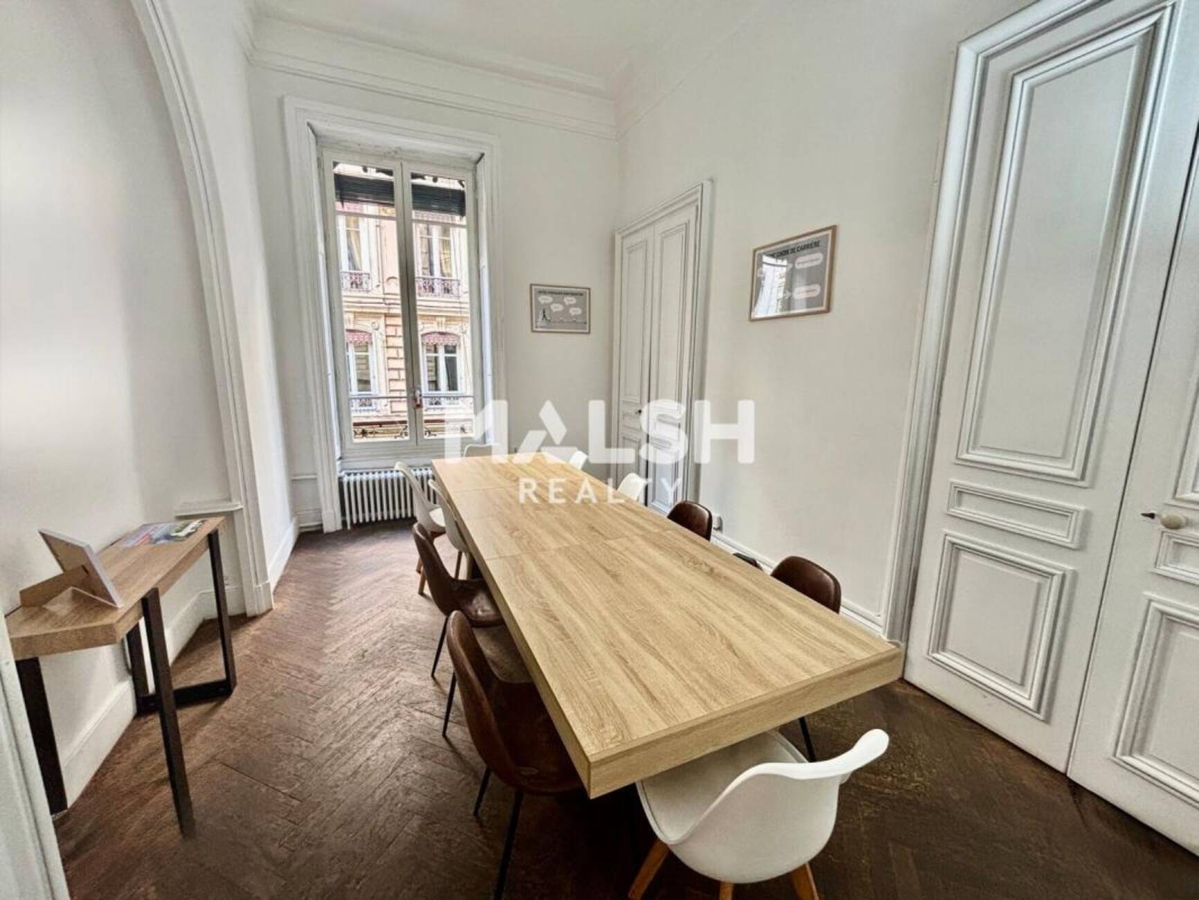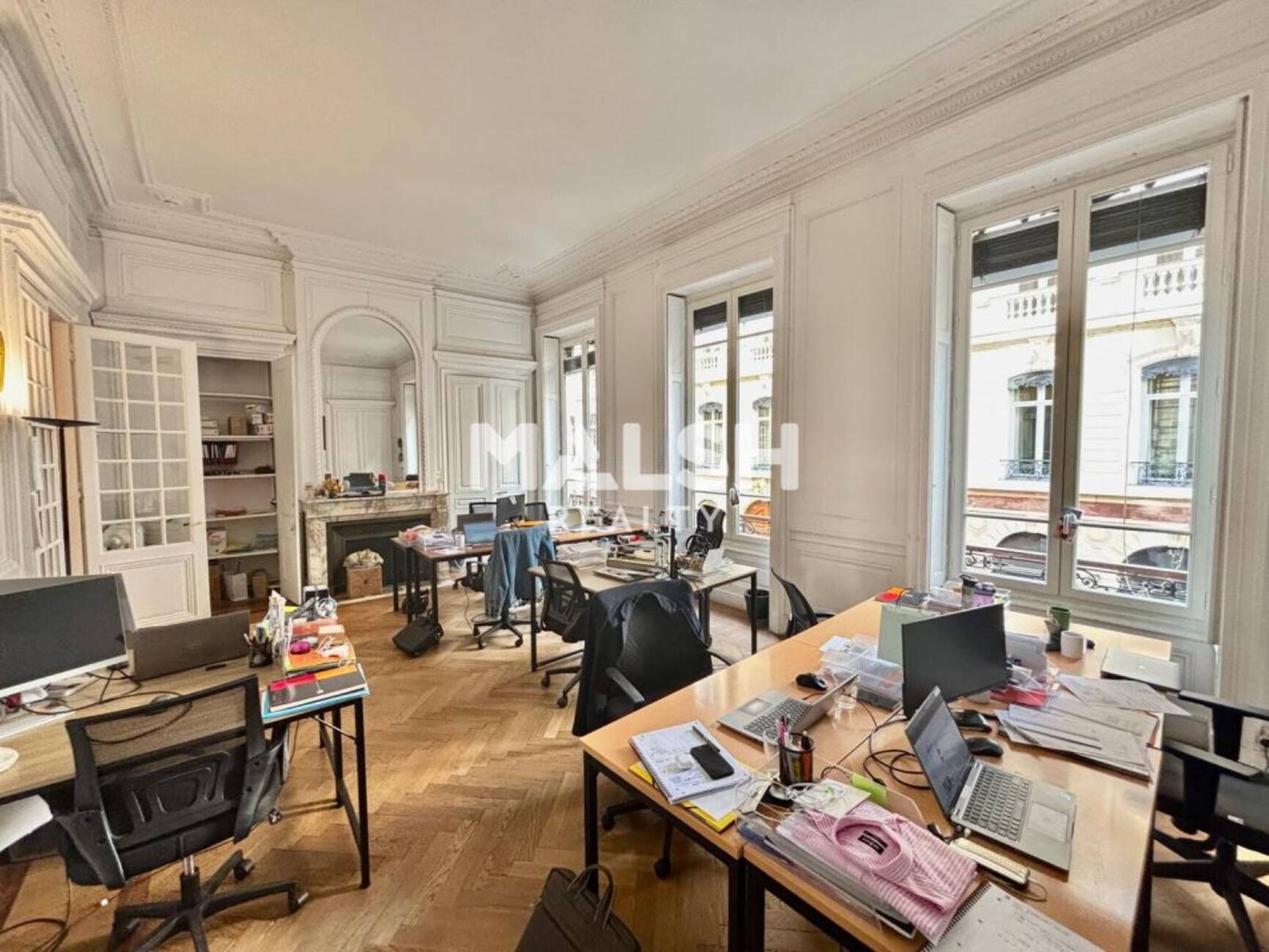 MALSH Realty vous propose des bureaux à louer d'une surface de 124 m², situés au coeur de la Presqu'île dans un quartier prestigieux à deux pas de la Place Bellecour, au sein d'un immeuble de standing de style haussmannien. Ces bureaux de caractère offrent un cachet remarquable avec cheminées et moulures décoratives, parquet en chevrons, belle hauteur sous plafond et excellente luminosité, ainsi que des huisseries et fenêtres rénovées en 2025.