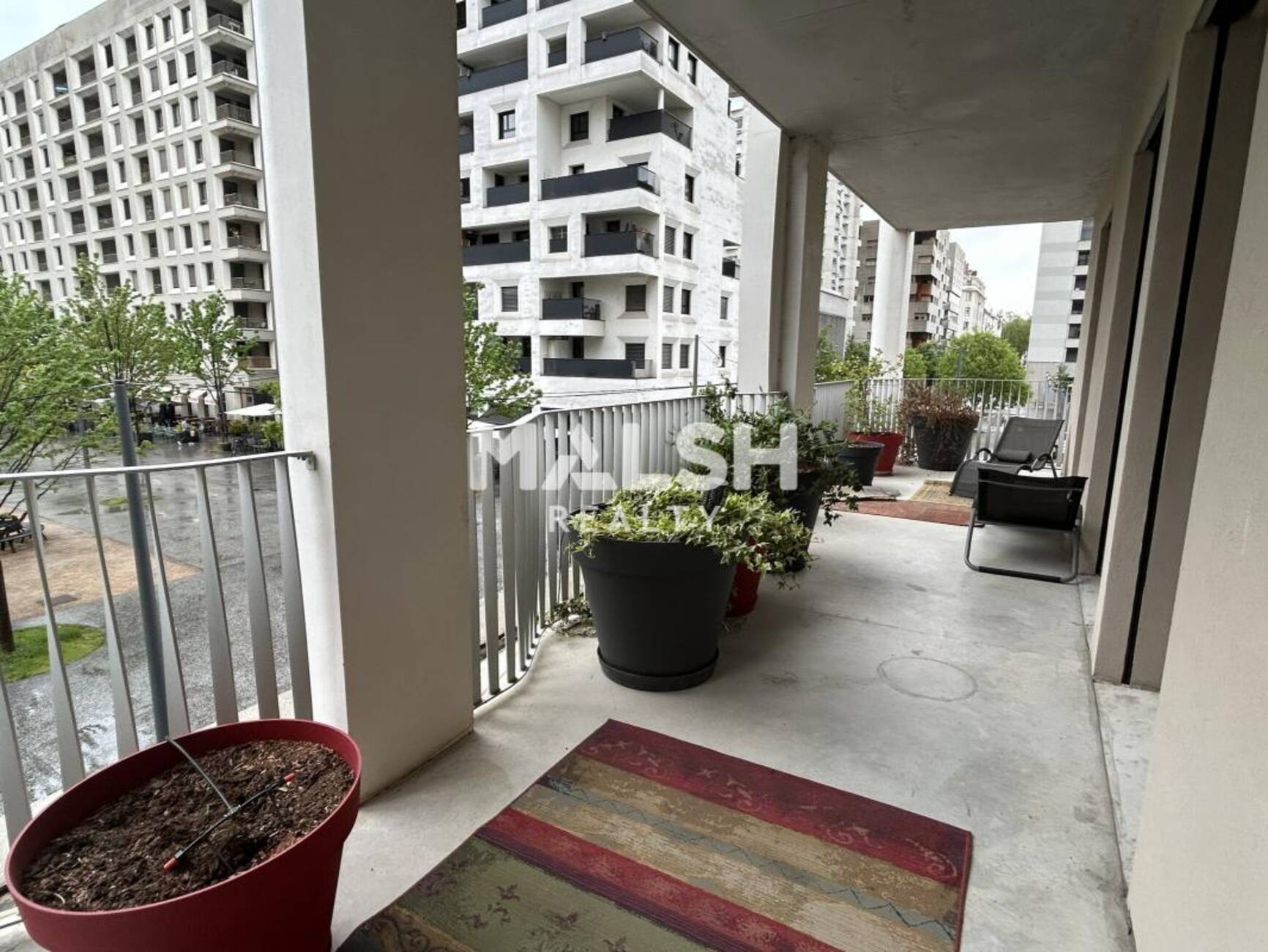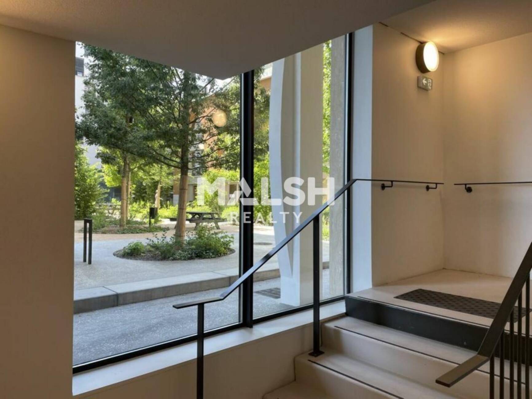 - Belle cour intérieure jardinée, Terrasses double face, béton aspect glacé traité au quartz.