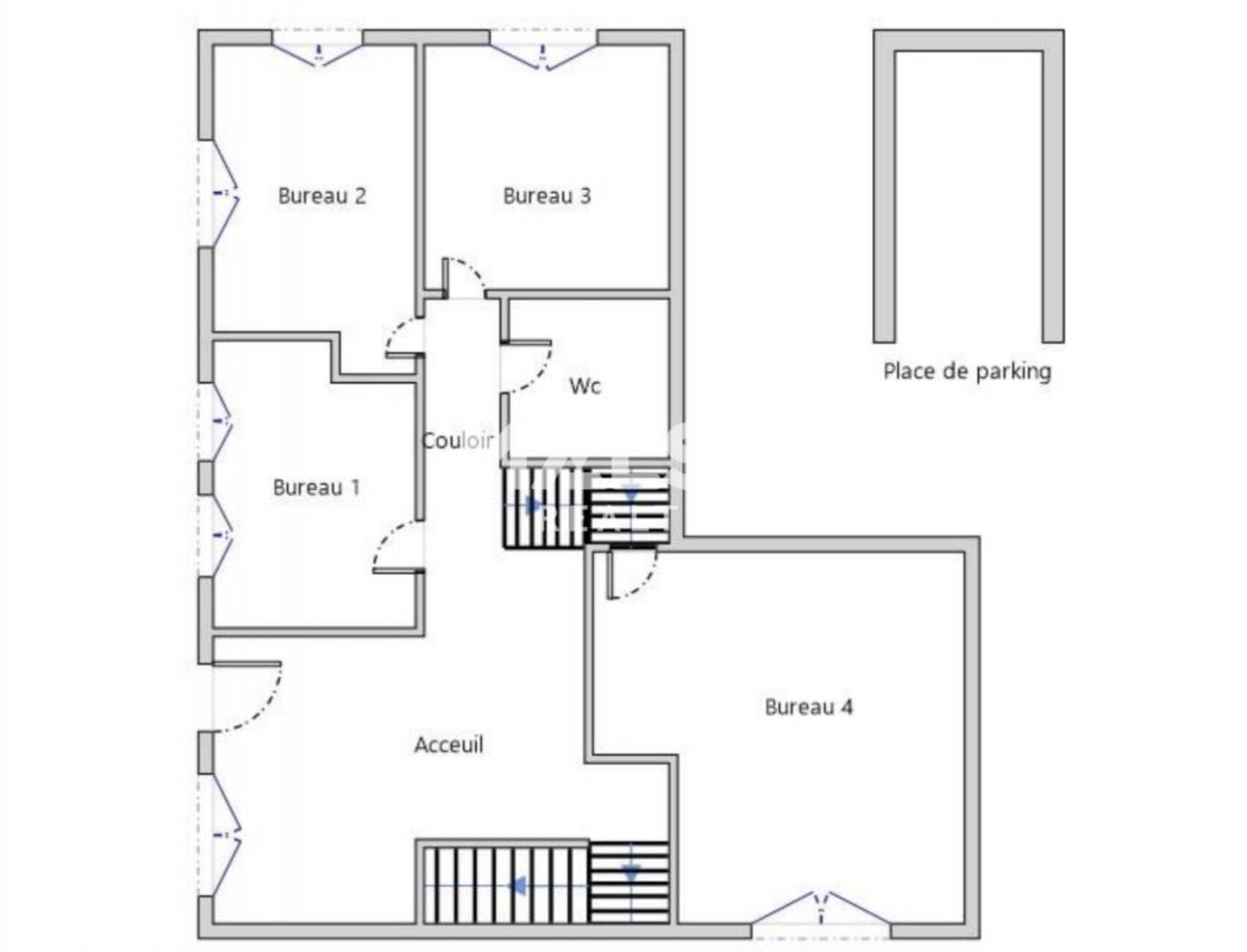 - 4 bureaux cloisonnés (9m² à 16m²)