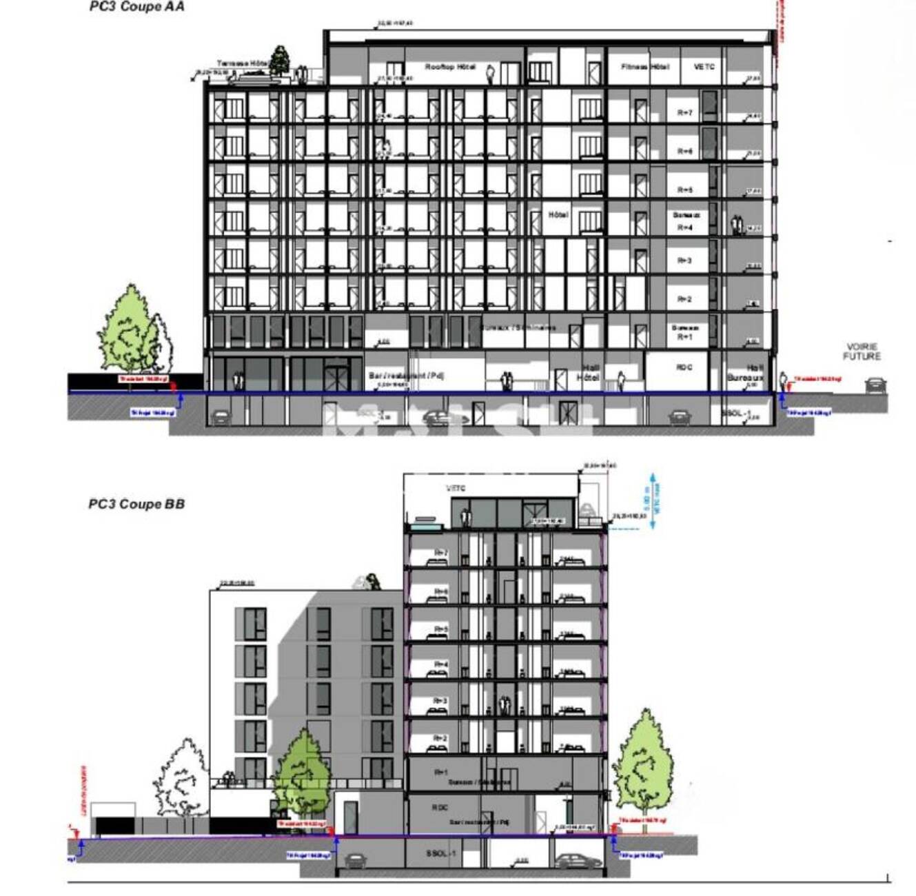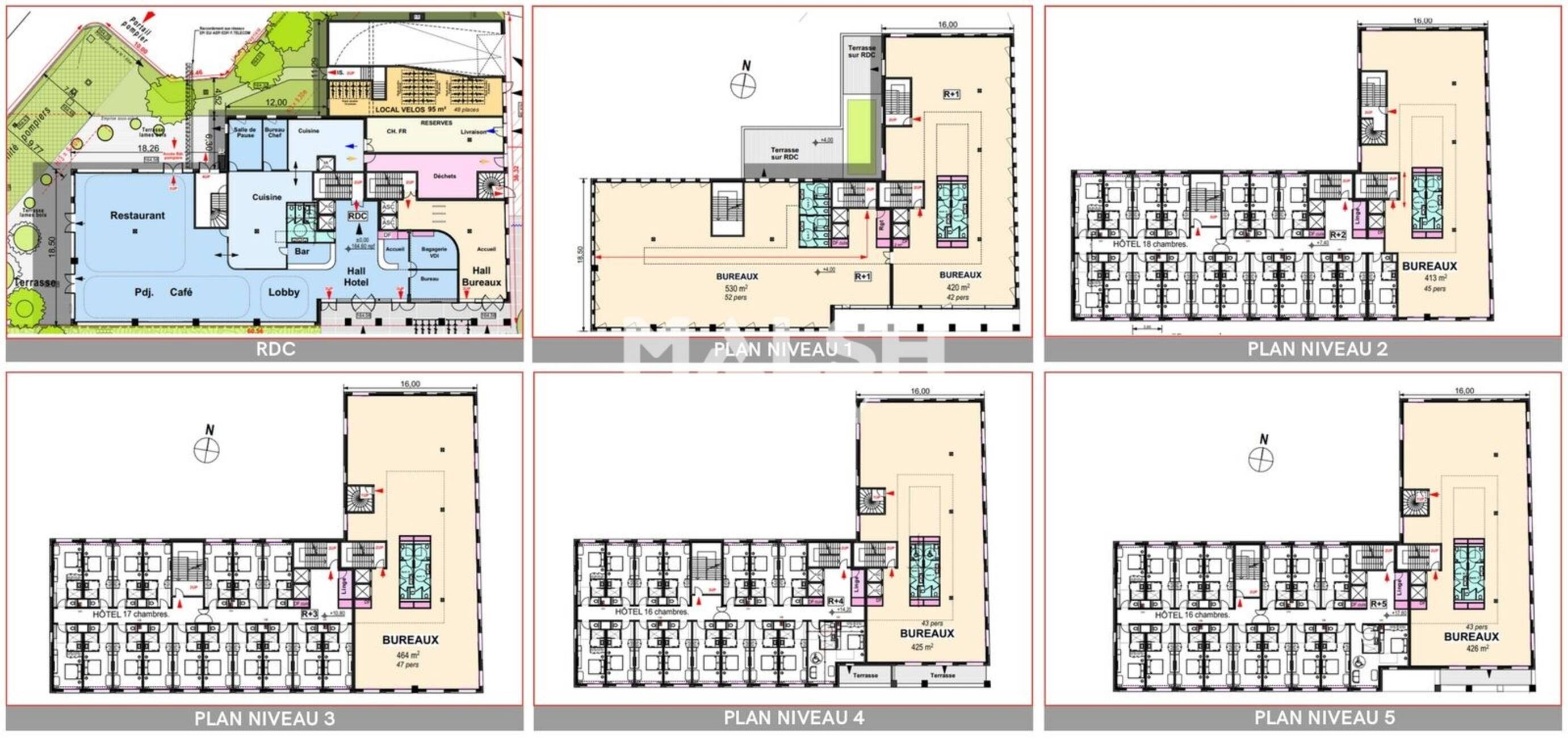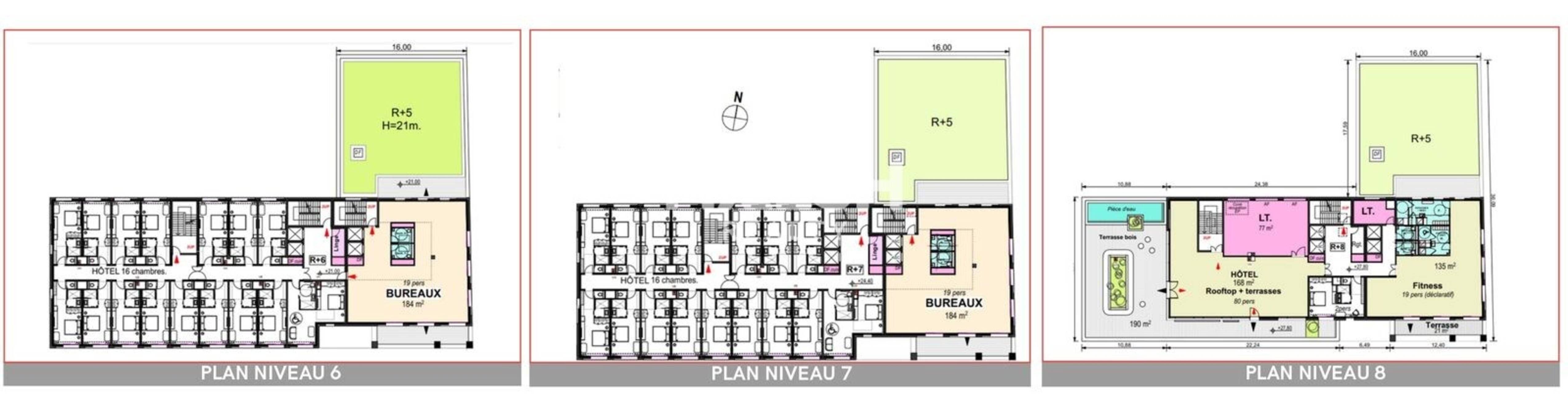 - sur 7 étages, d'un accueil au RDC
