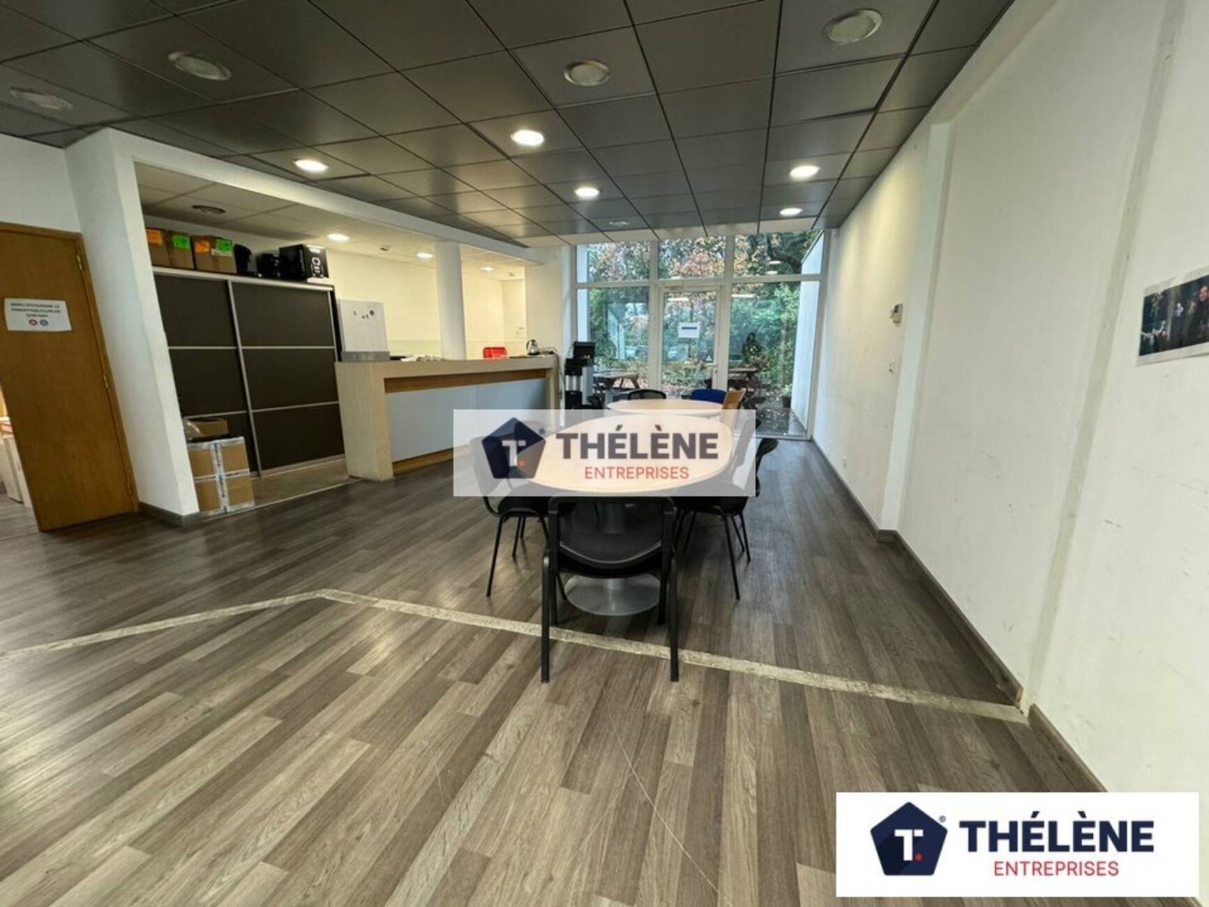 - Au RDC : 4 bureaux cloisonnés, un open space, 2 salles de réunion, une réserve, sanitaires, ainsi qu'une salle de repos avec cuisine donnant accès à un espace extérieur.
