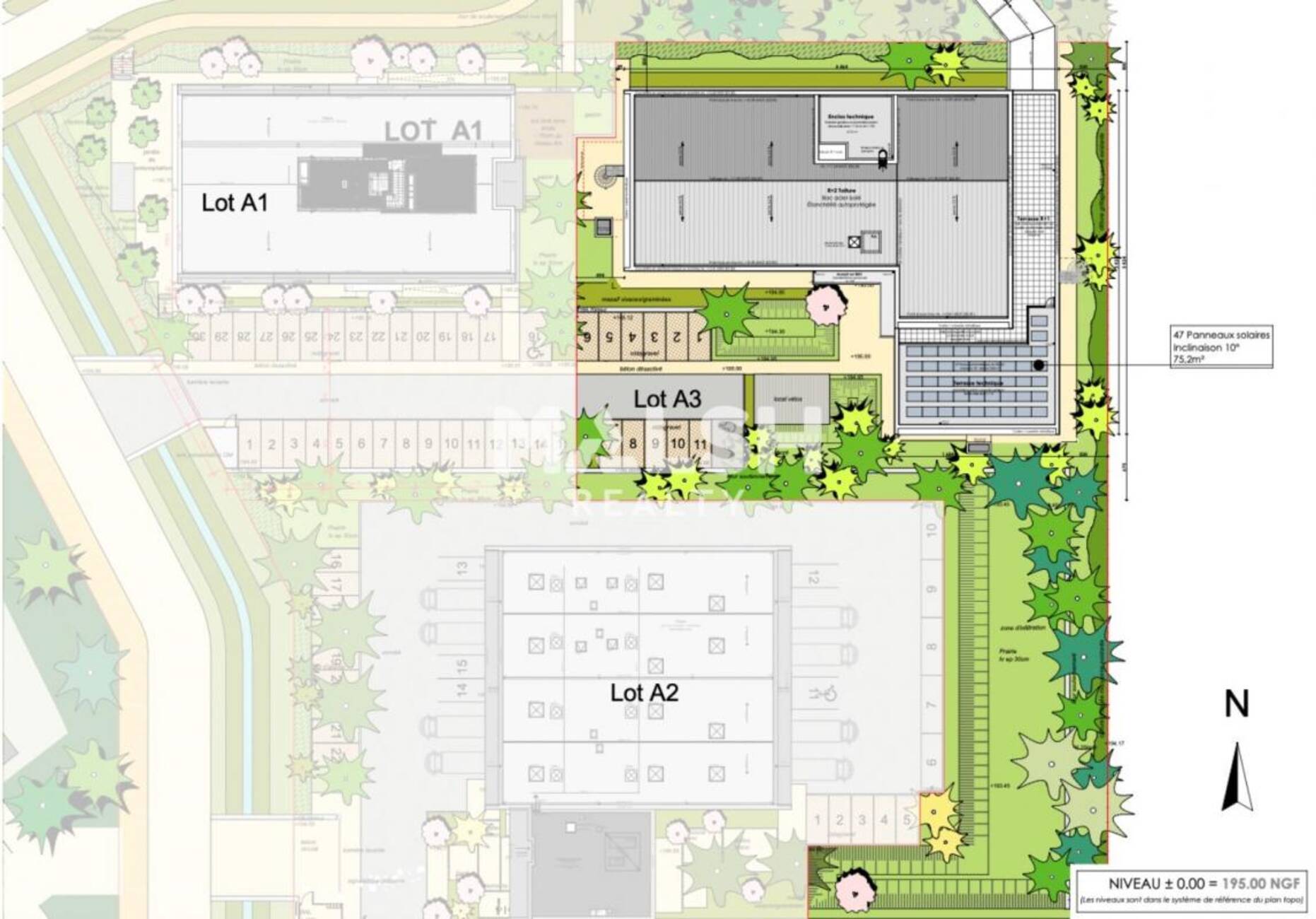 - R+2 : Terrasse de 122,90 m² (Lot 11)