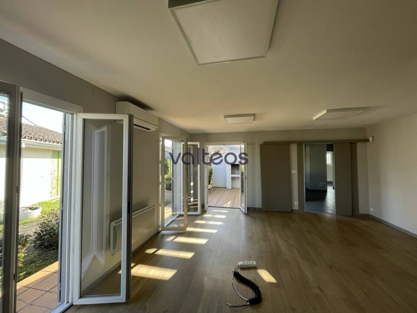 L'agence VALTEOS vous propose à la location cette surface de bureaux de 130m² située au cœur du Village Expo à Portet sur Garonne. Pavillon indépendant composé de 5 bureaux lumineux de plain pied, d'un espace accueil, d'une salle de bain et de sanitaire et d'une terrasse avec barbecue. Pavés leds , sols parquet et carrelage, climatisation réversible.