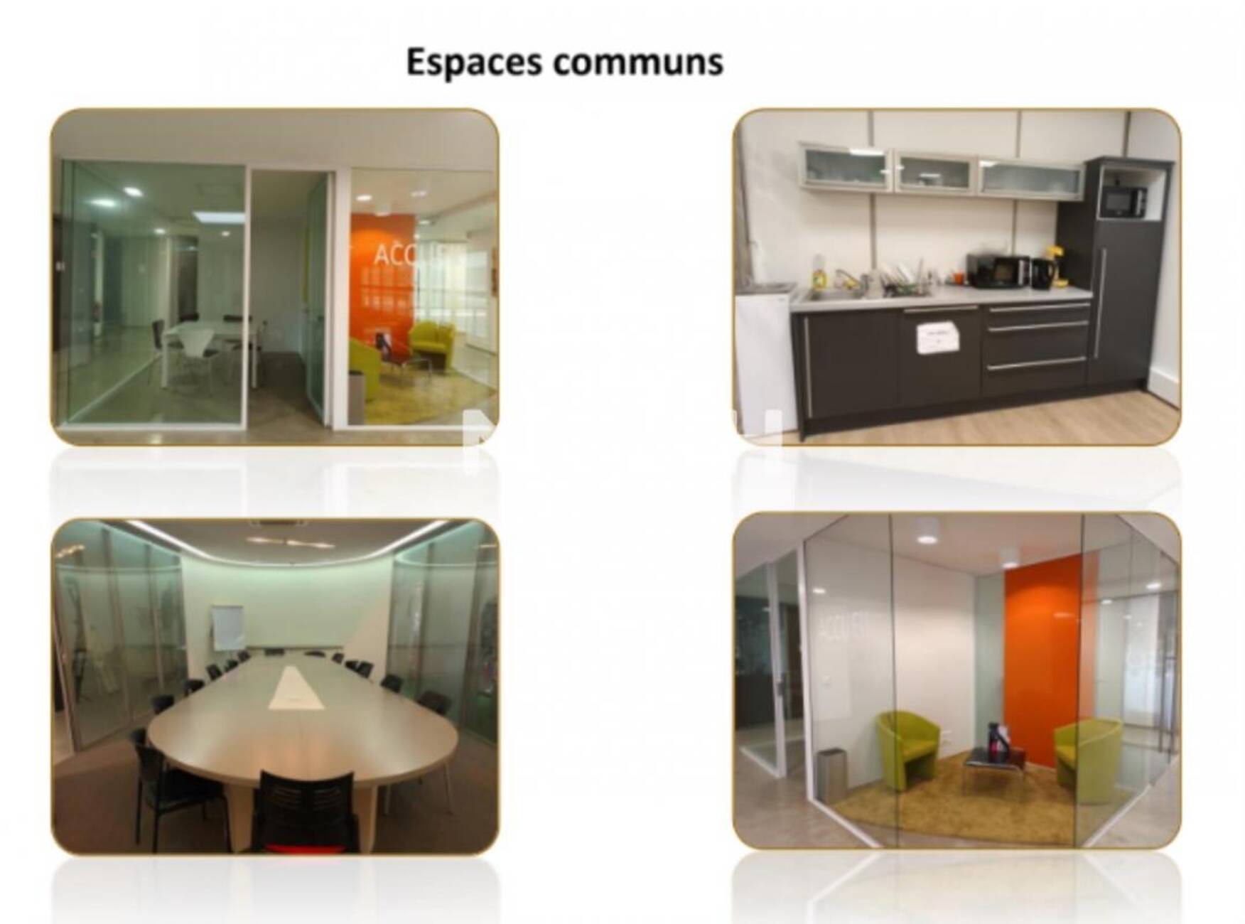 Répartis entre le rez-de-chaussée et le premier étage, ils disposent d'une cuisine commune et d'un espace d'accueil commun. Une grande salle de réunion est mise à disposition.
