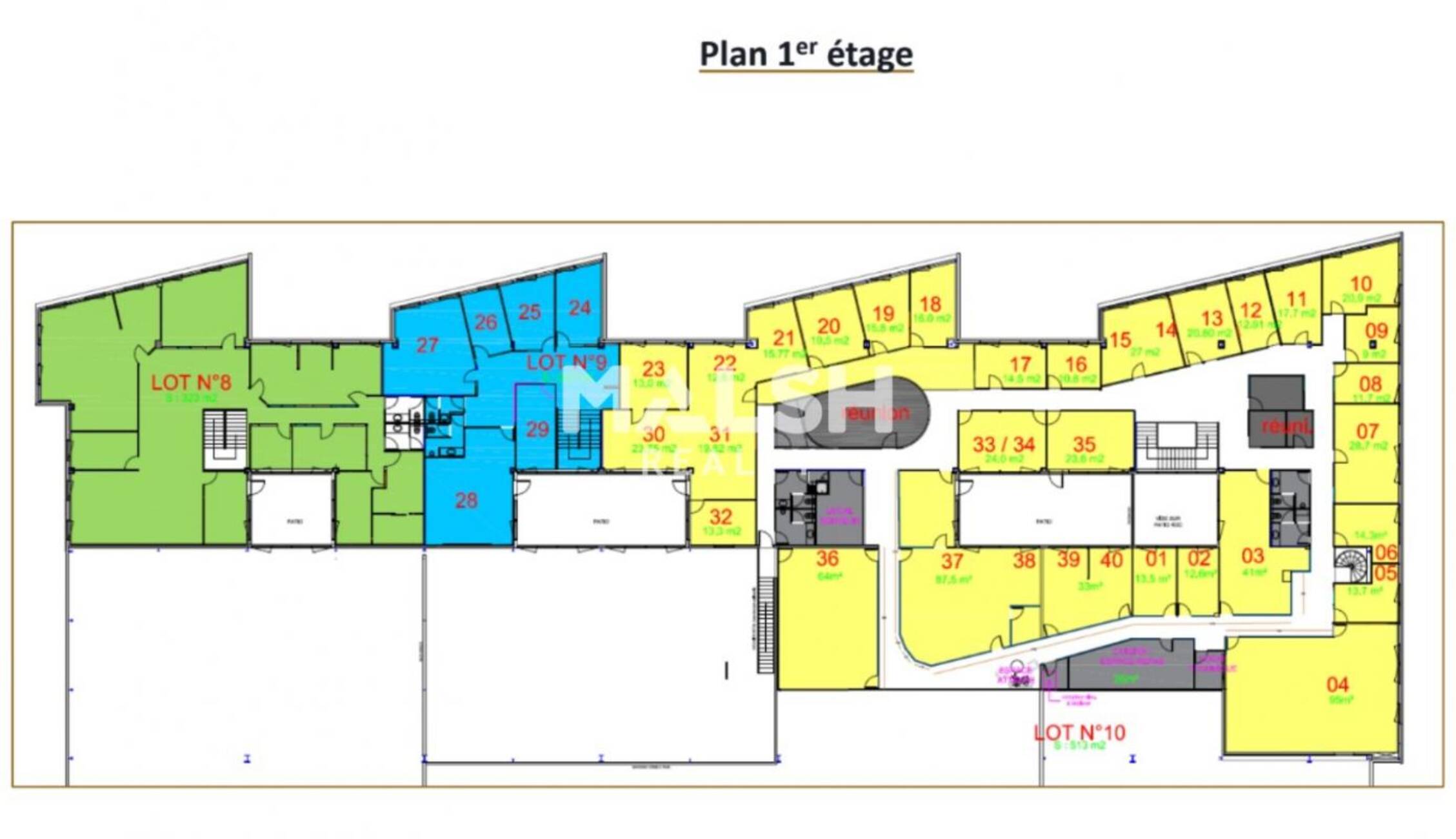 | Étage | Bâtiment | Type | Surfaces | Disponibilité | Loyer | Charges | Honoraires | Fiscal | Bail | Révision annuelle | Prix | Charges | Honoraires | Fiscal | Paiement Loyer | lot | Coworking | |