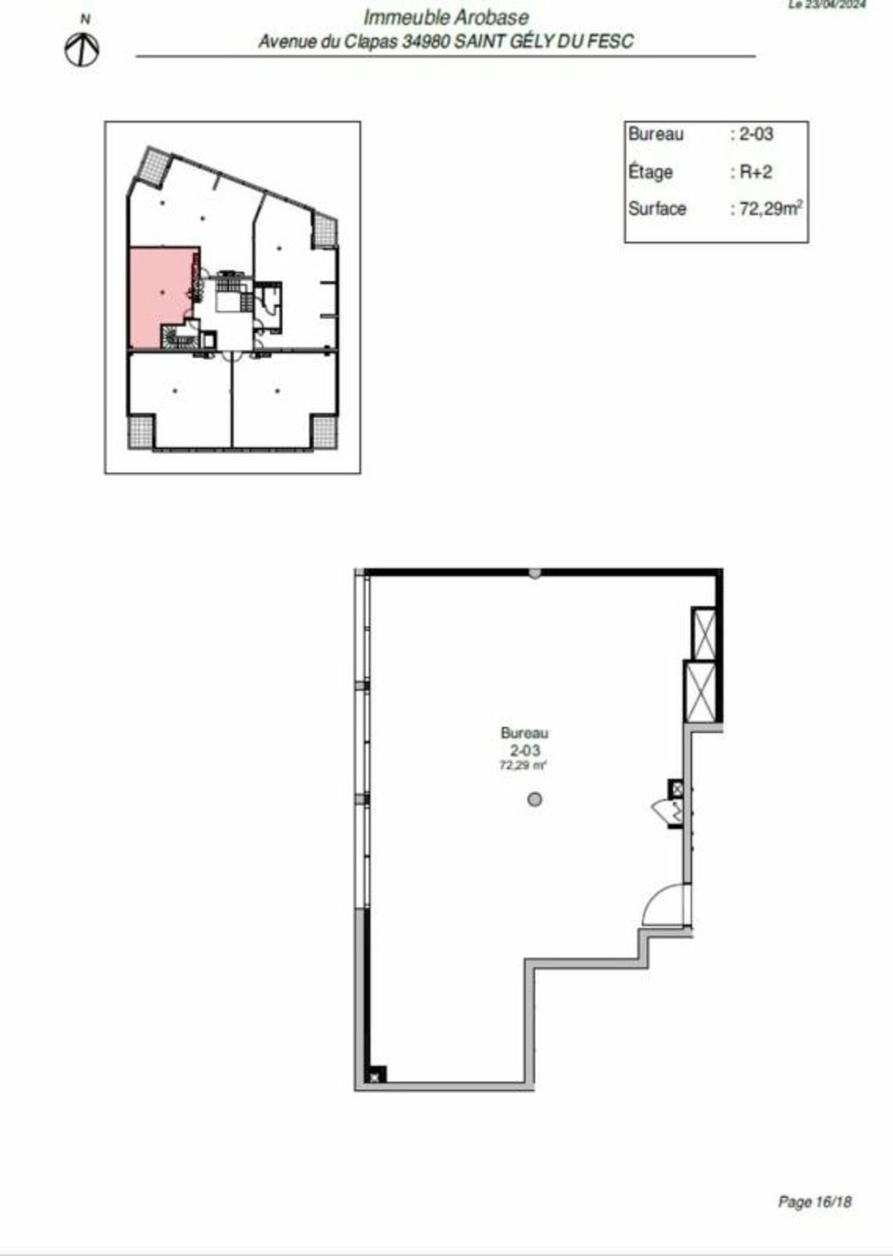 | 2-04 | R+2 | BUREAUX | 145 m² + 10.31 m² de terrasse | 25 375 € | 25 € HT/m² | 3 en ss-sol + 1 extérieur + 1 ext couvert | 4 860 € |