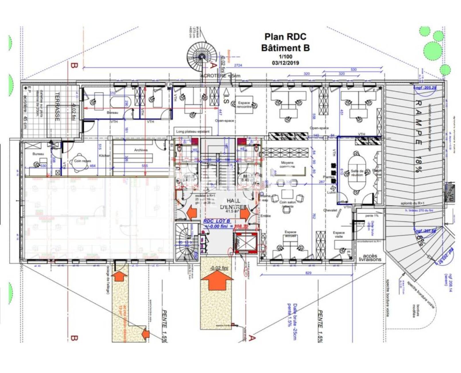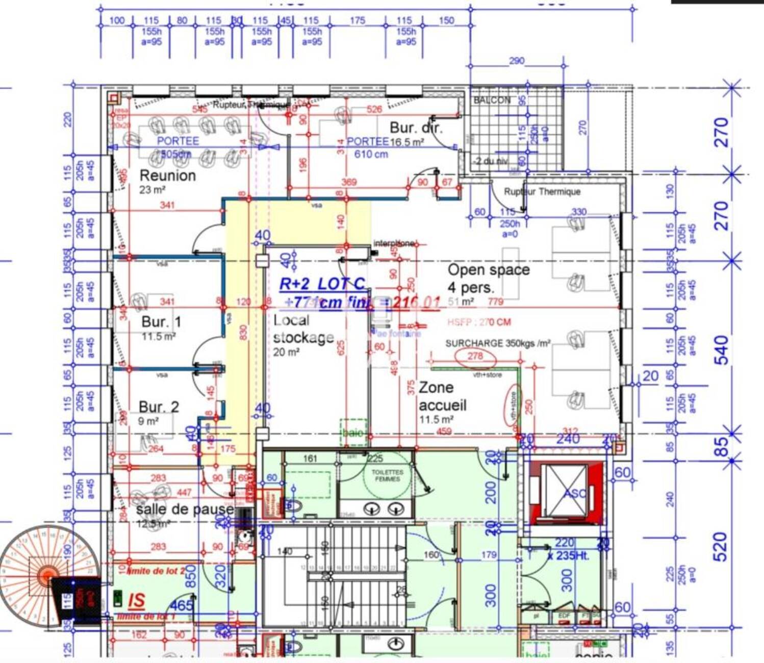 | RDC | Bureaux | 376,57 | Immédiate | 120 HT/HC/m²/an | 27 HT/m²/an | 15% HT d'un an de loyer HT à la charge du preneur, payables à la signature du bail | commercial 3-6-9 ans | LOT 1 | ||||||||||