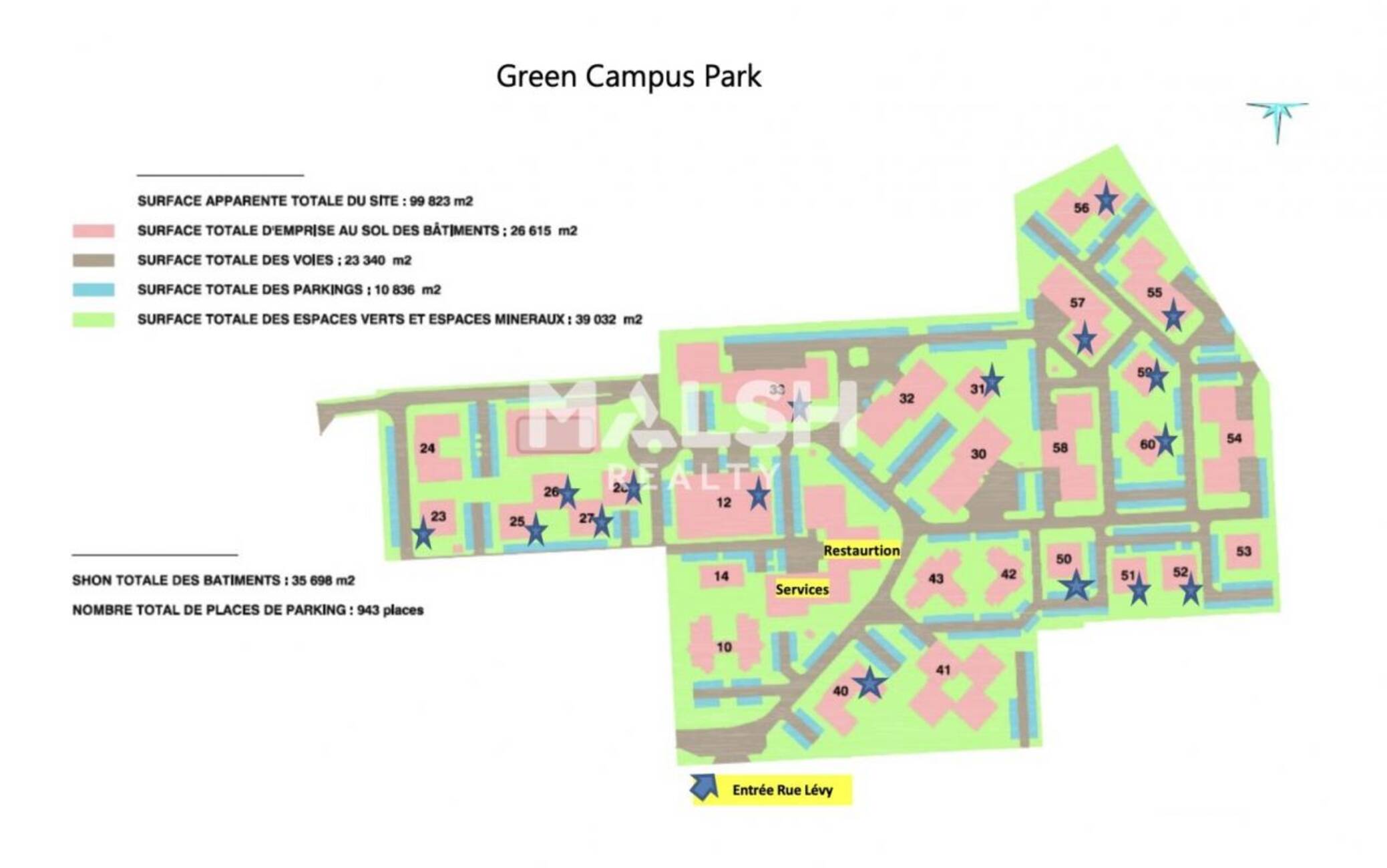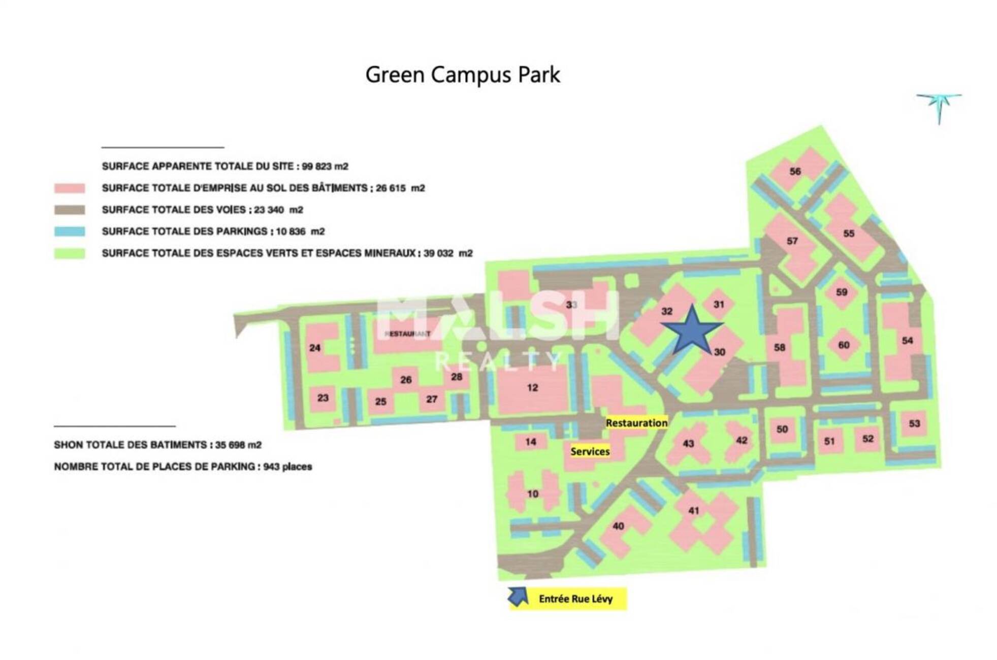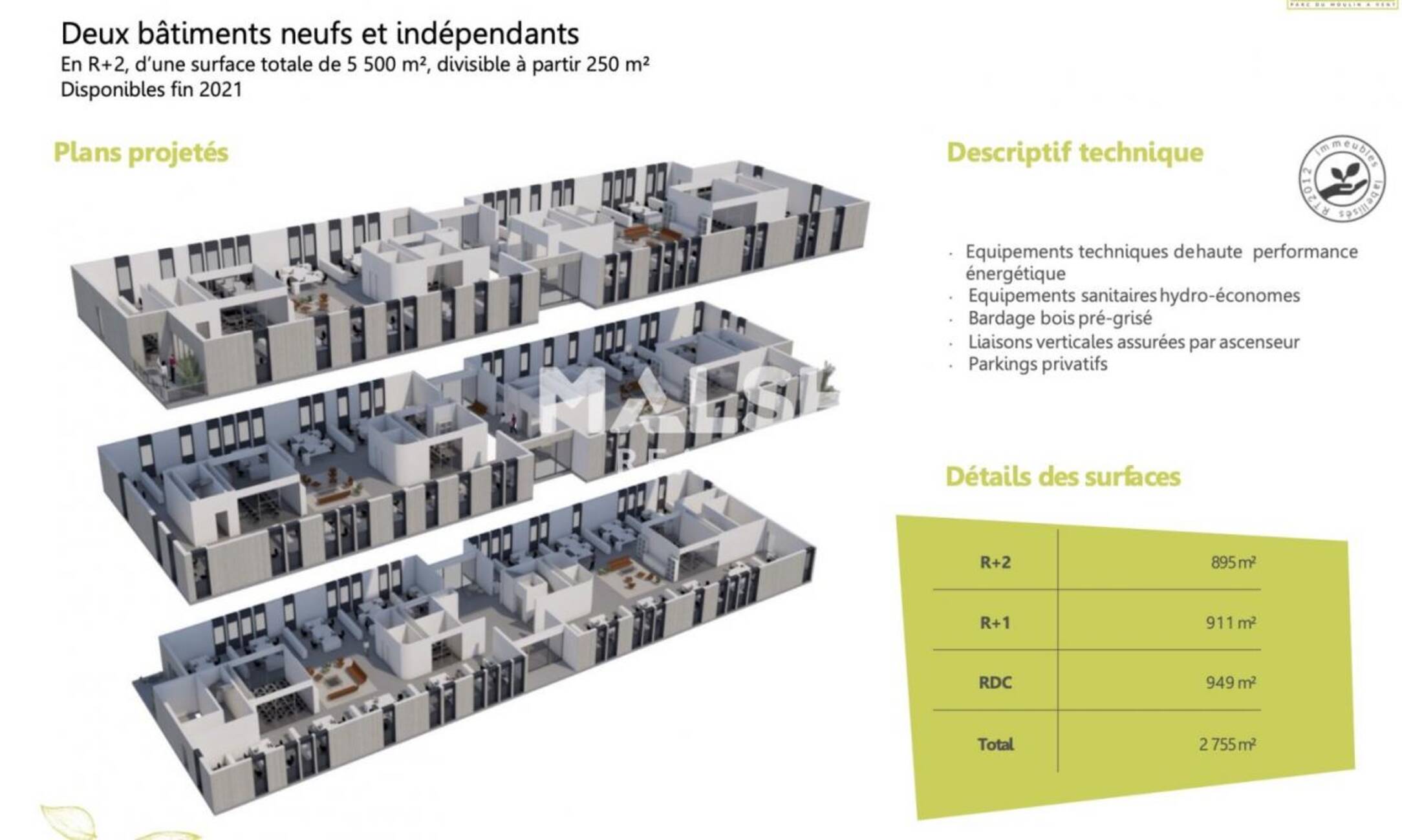 MALSH Realty & Property vous propose, à la location, des surfaces de bureaux situées au sein d'un parc tertiaire calme, arboré, clos et sécurisé.