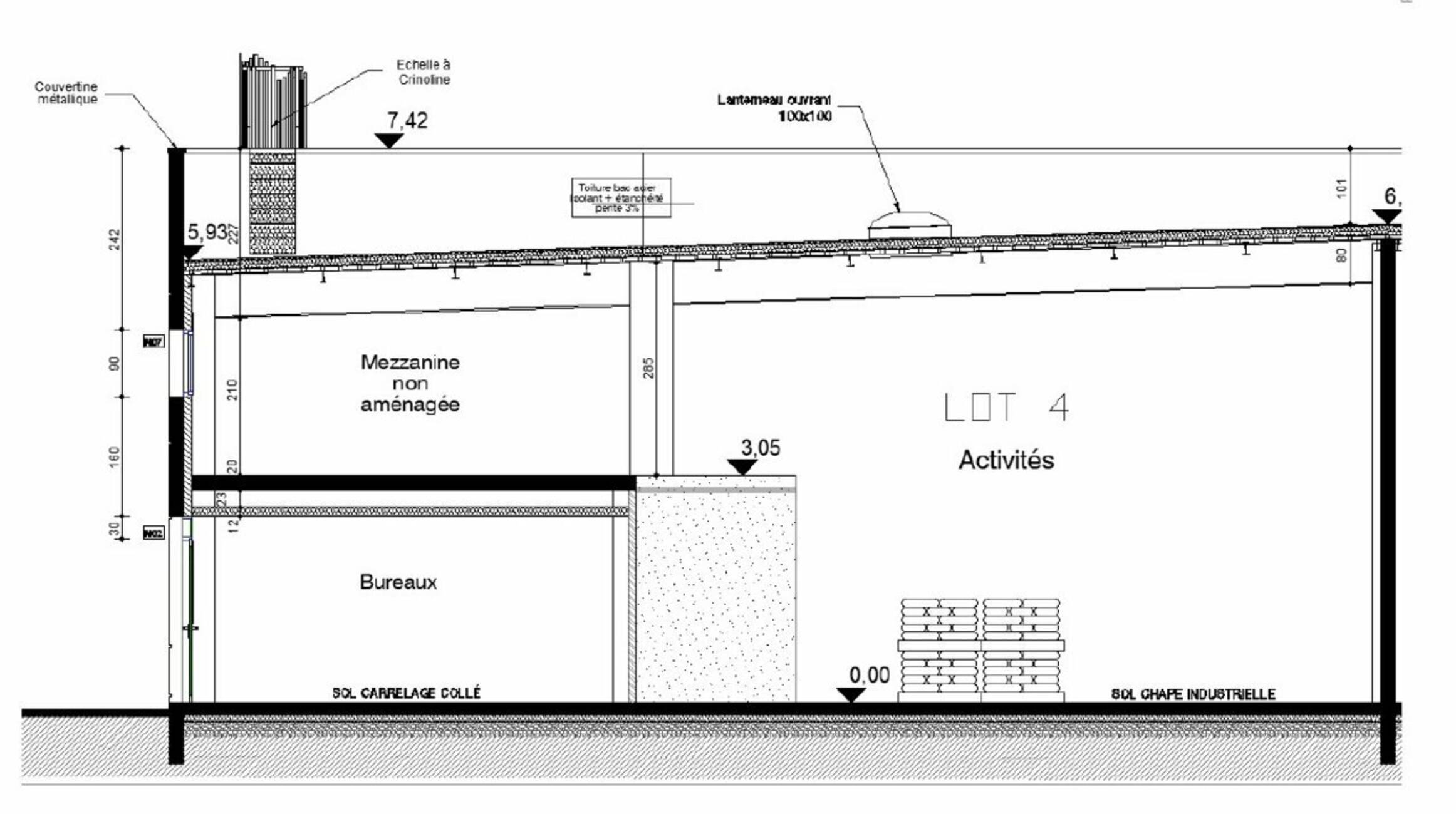 o Mezzanine de 71 m² (dalle béton)