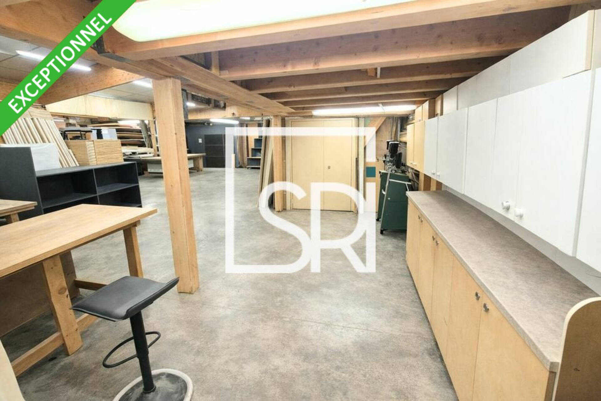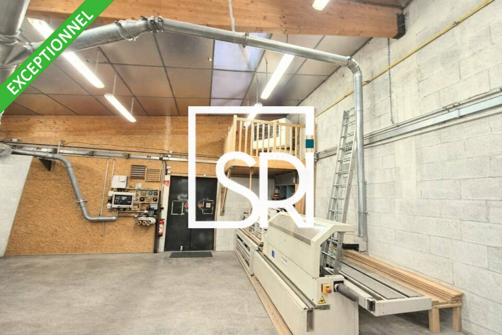 - Grande zone de stockage avec mezzanine.
