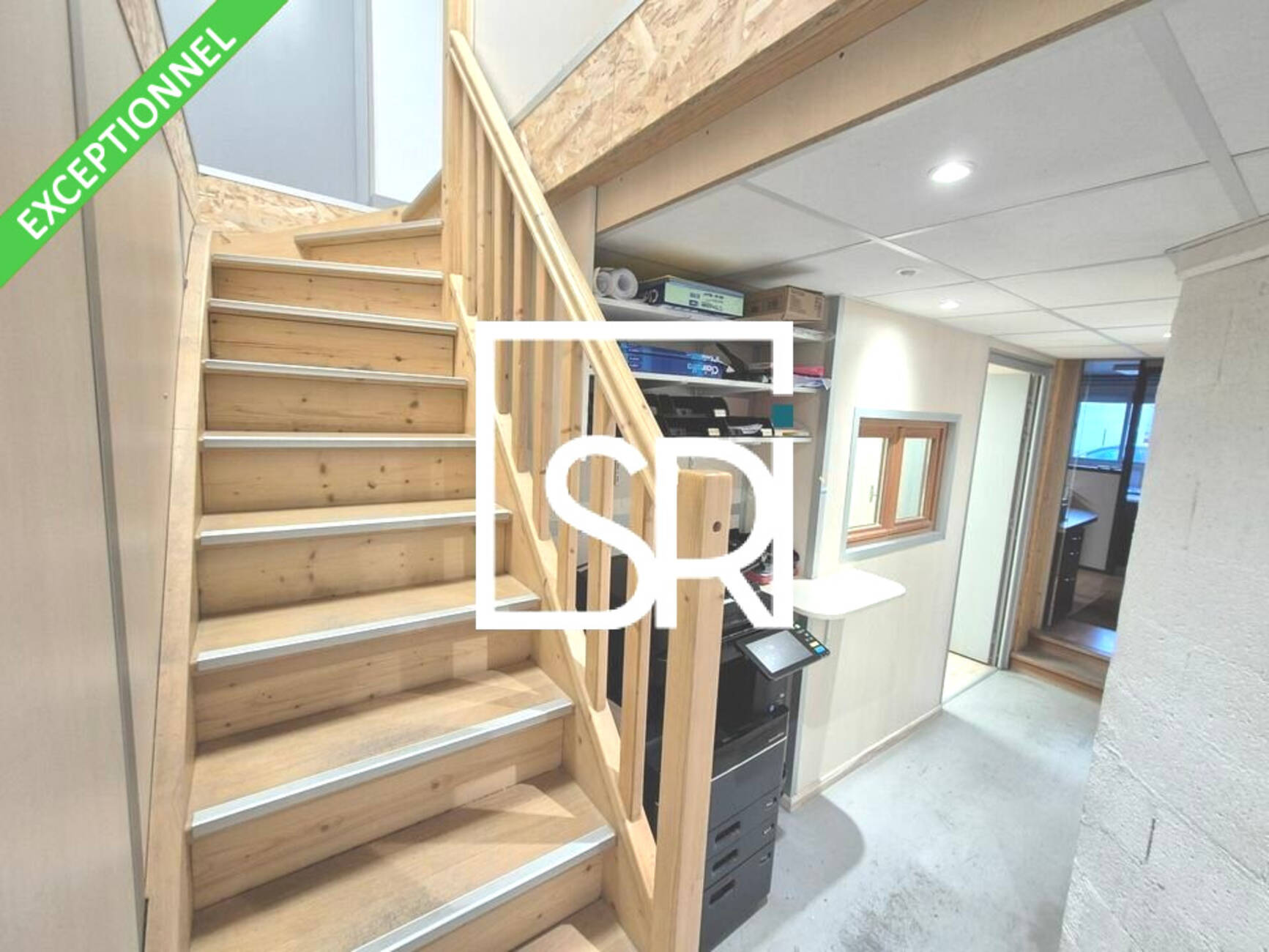 - Etage : grand plateau de bureaux donnant sur l'atelier, salle serveur/informatique.ÉLEMENTS TECHNIQUES :