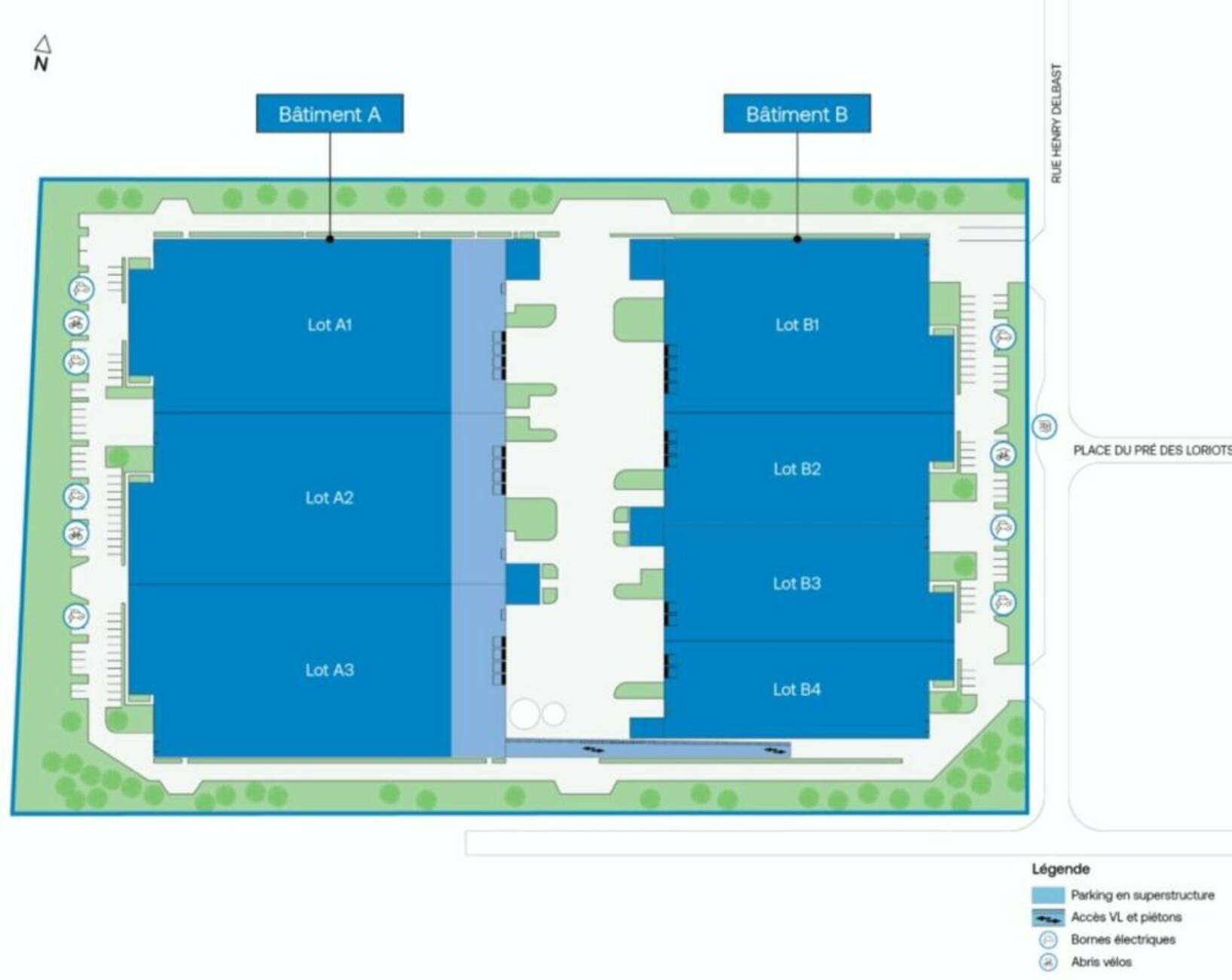 | B2 | Activités/Bureaux | 3057 m² | 278 m² | 3335 m² | 127 € |