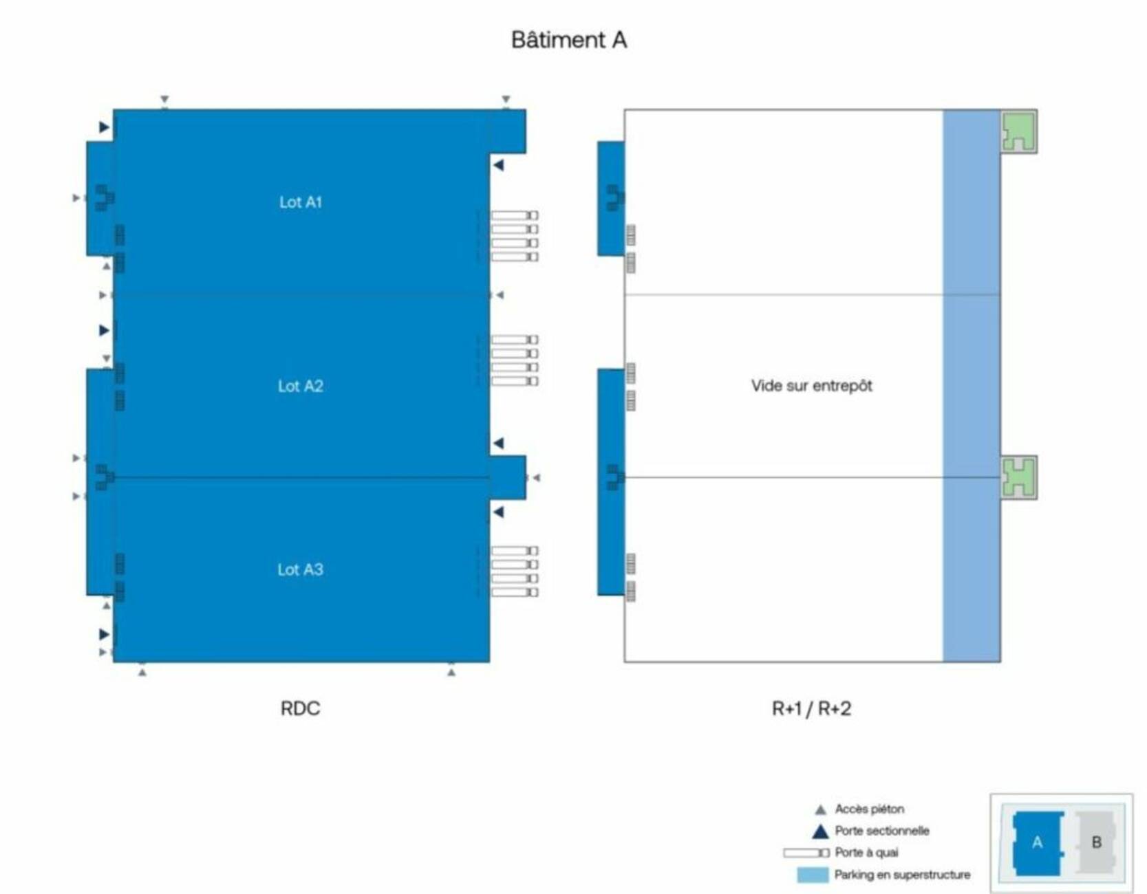 | A2 | Activités/bureaux | 6046 m² | 654 m² | 6700 m² | 105 € |